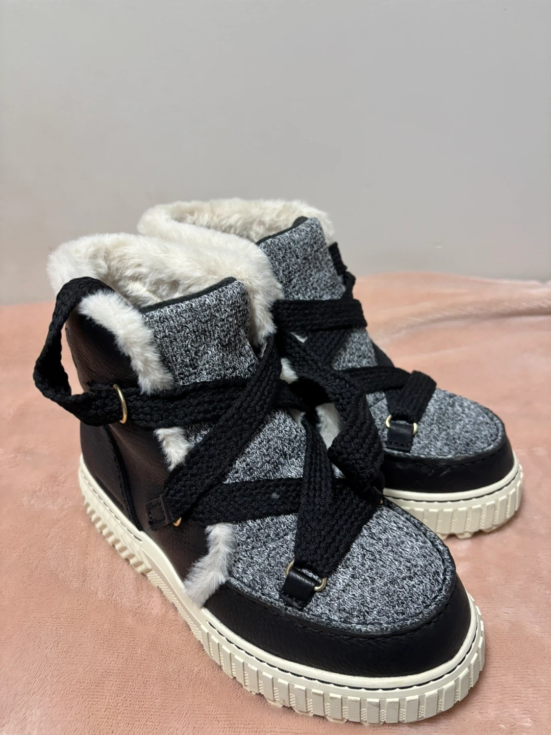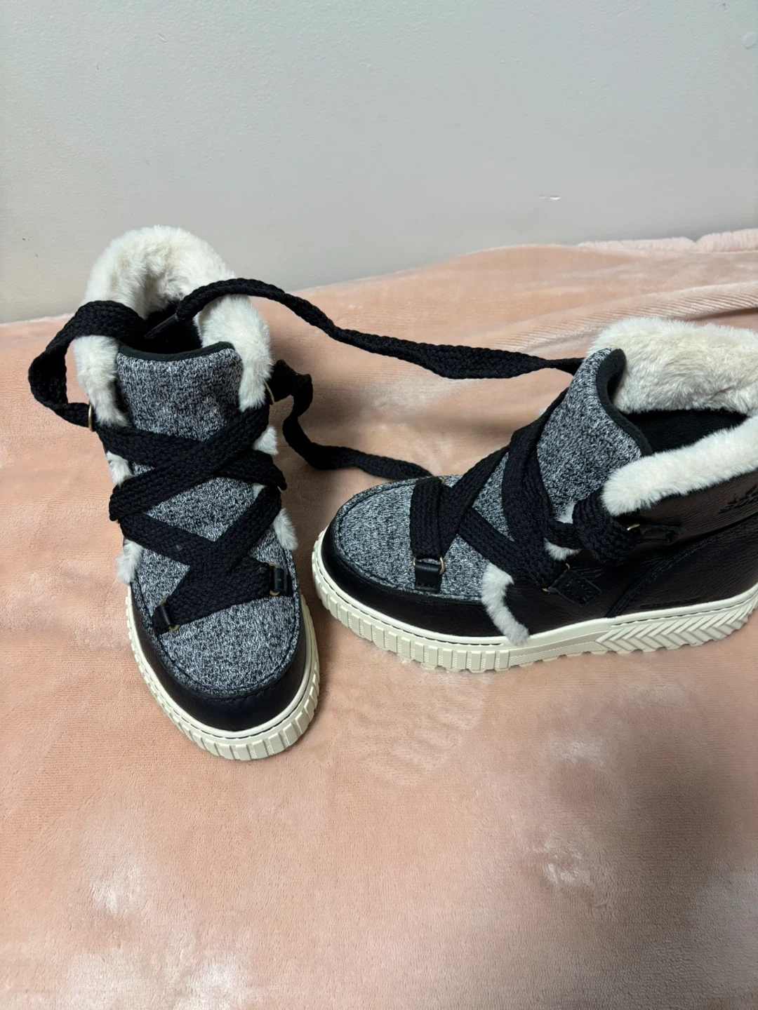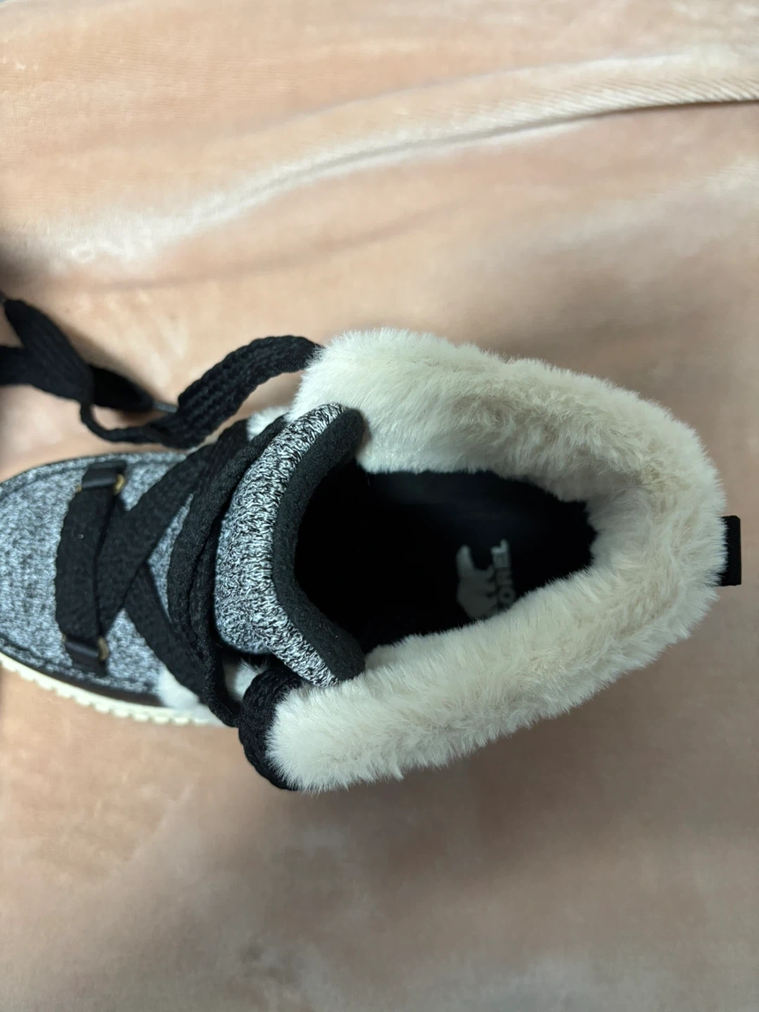 Cozy Sorel Explorer Ona Ave boots in size 5.5. These are in perfect condition and ready for the cold weather! They feature a black and grey design with faux fur trim and black laces. Perfect for staying warm and stylish this winter