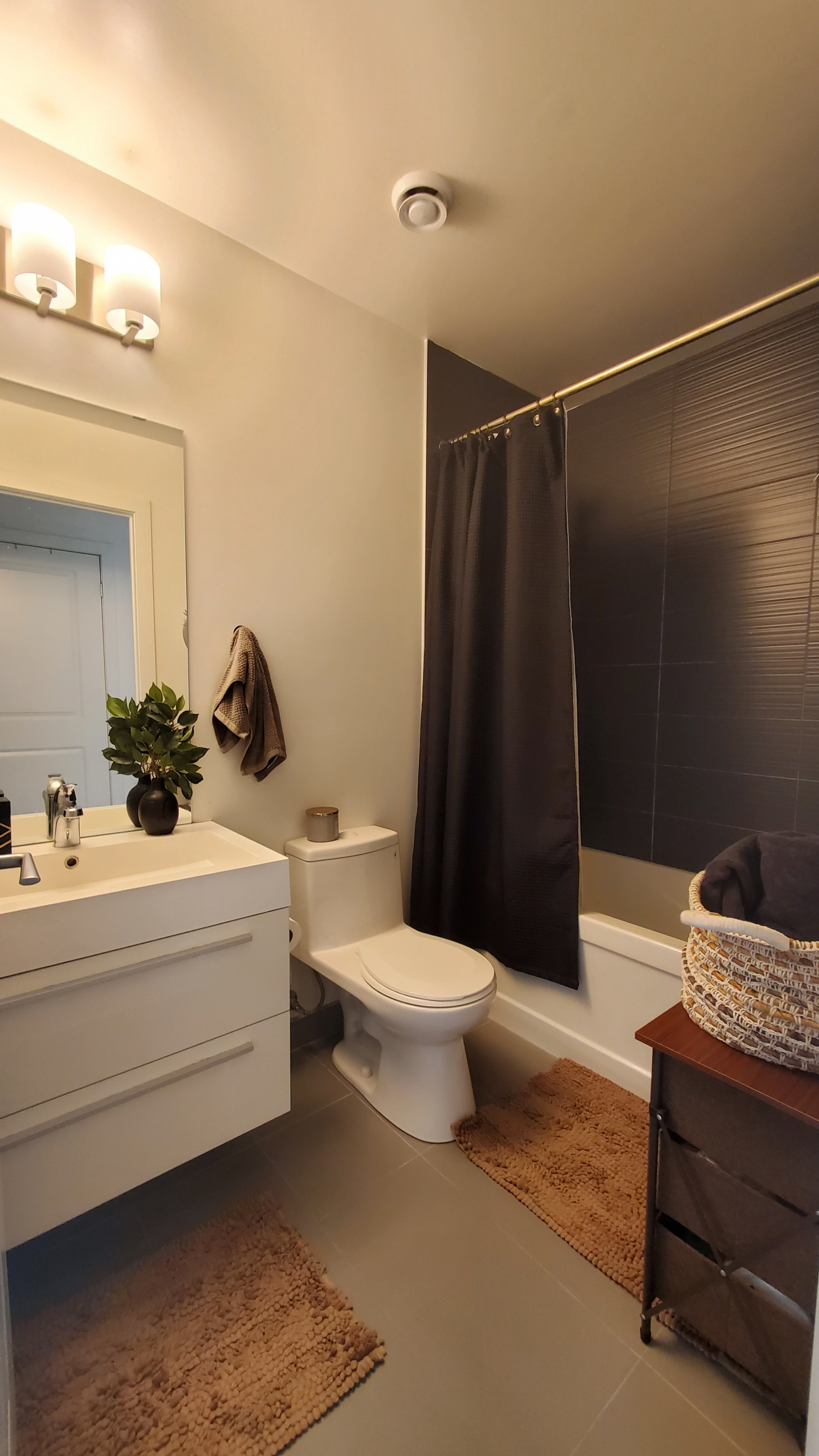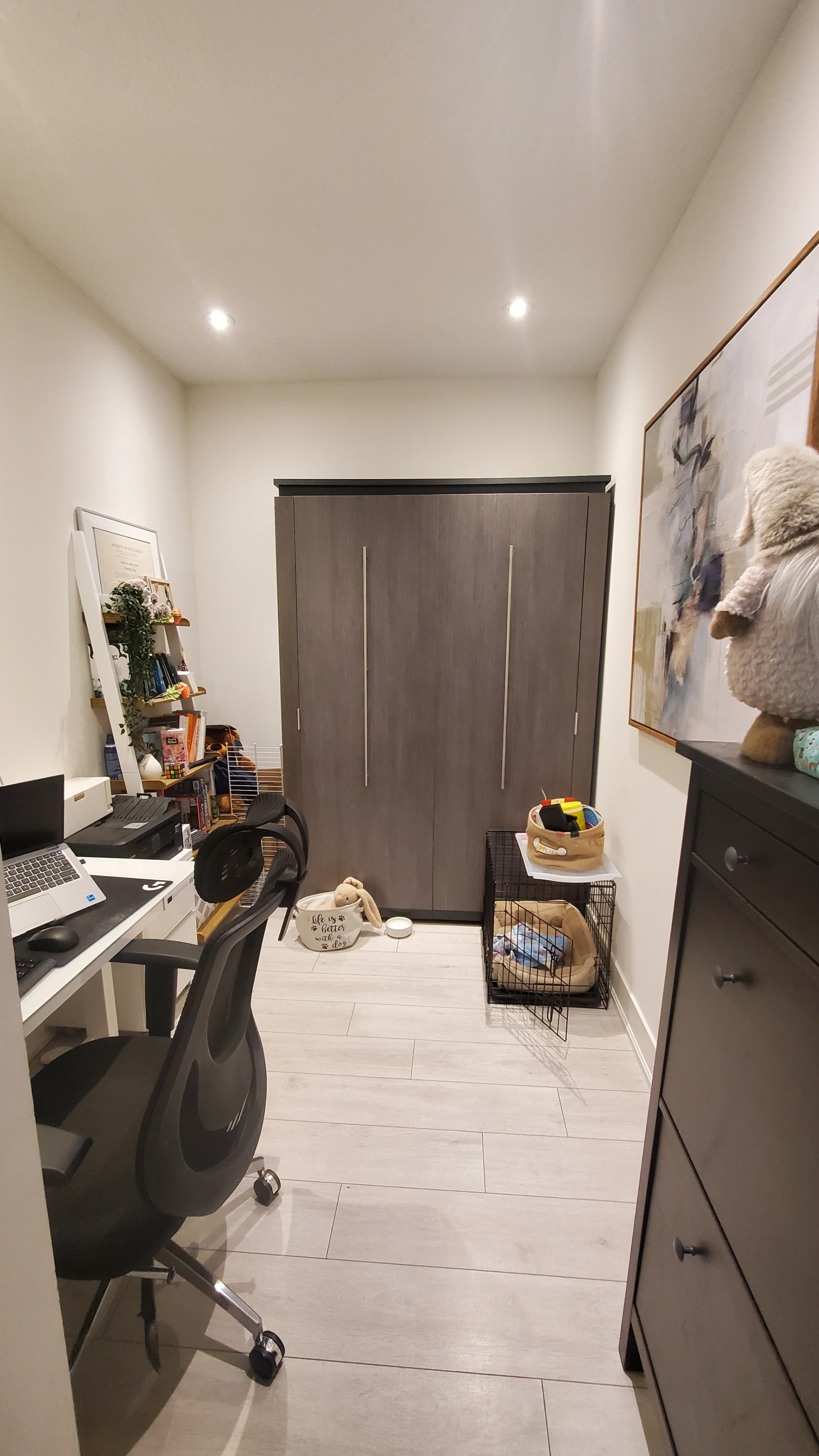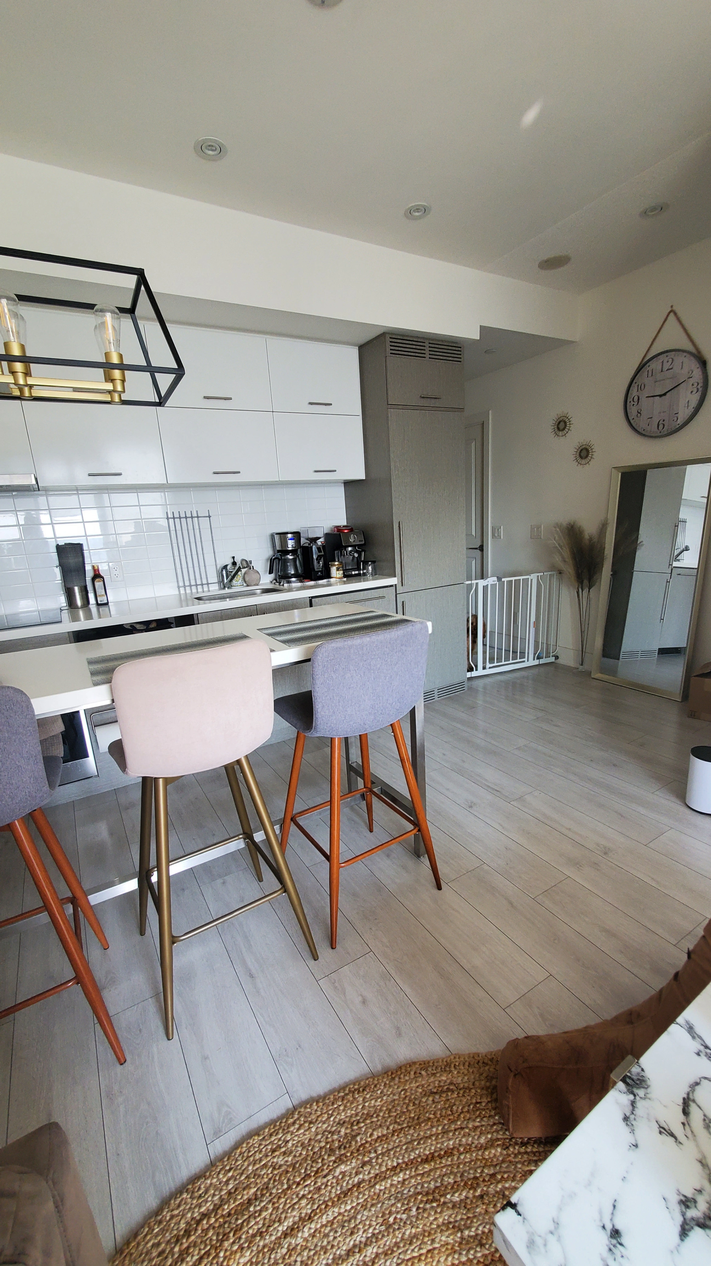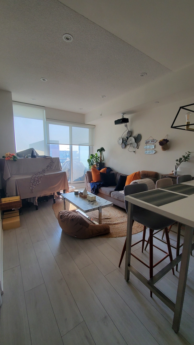 • Bright and modern unit with functional layout. It comes with a moveable kitchen island and Murphy bed in the den.
