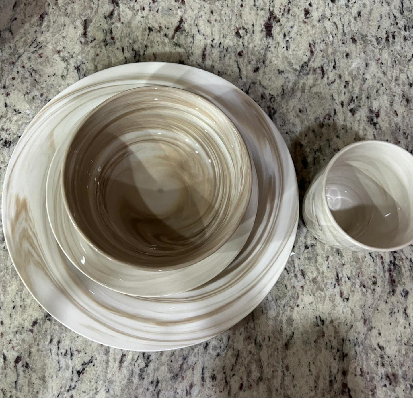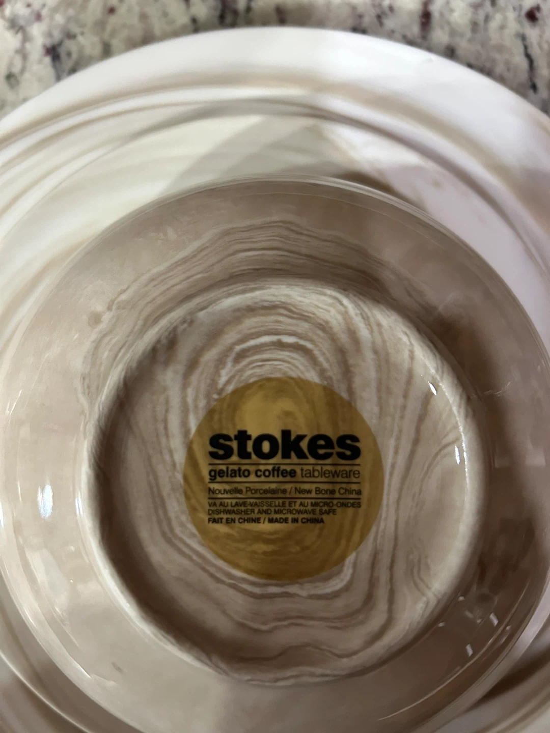 Selling a Stokes Gelato coffee tableware set. It is Nouvelle Porcelain/New Bone China. The set is dishwasher and microwave safe. It is made in China.