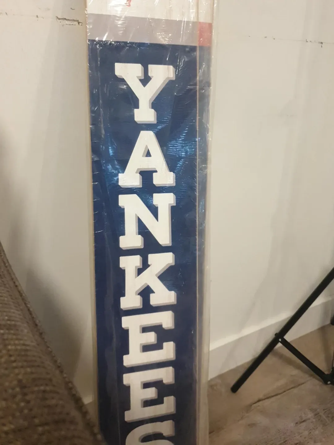 I have a New York Yankees wood sign that is still in its original packaging! It's a great piece for any Yankees fan looking to add some team spirit to their space