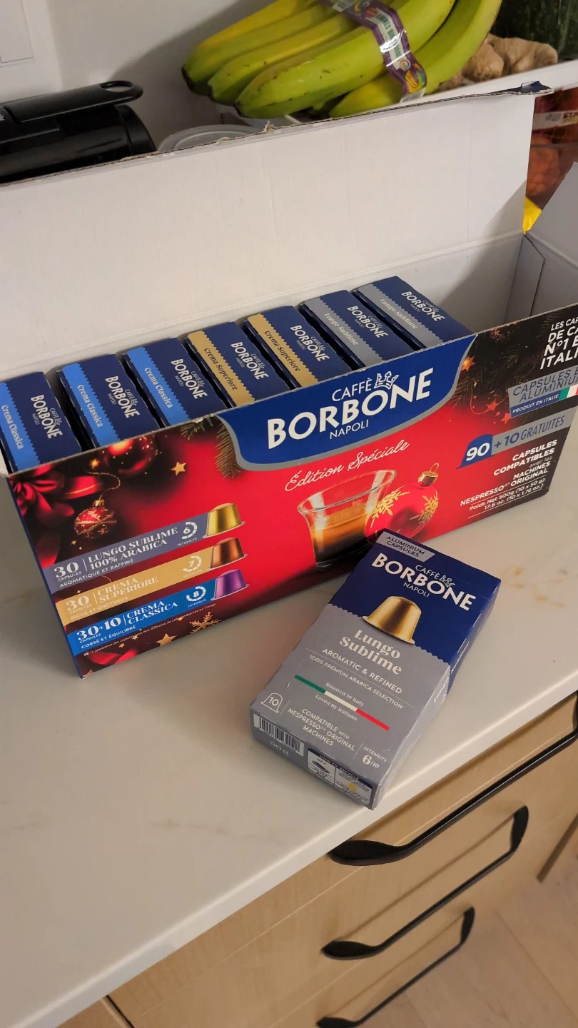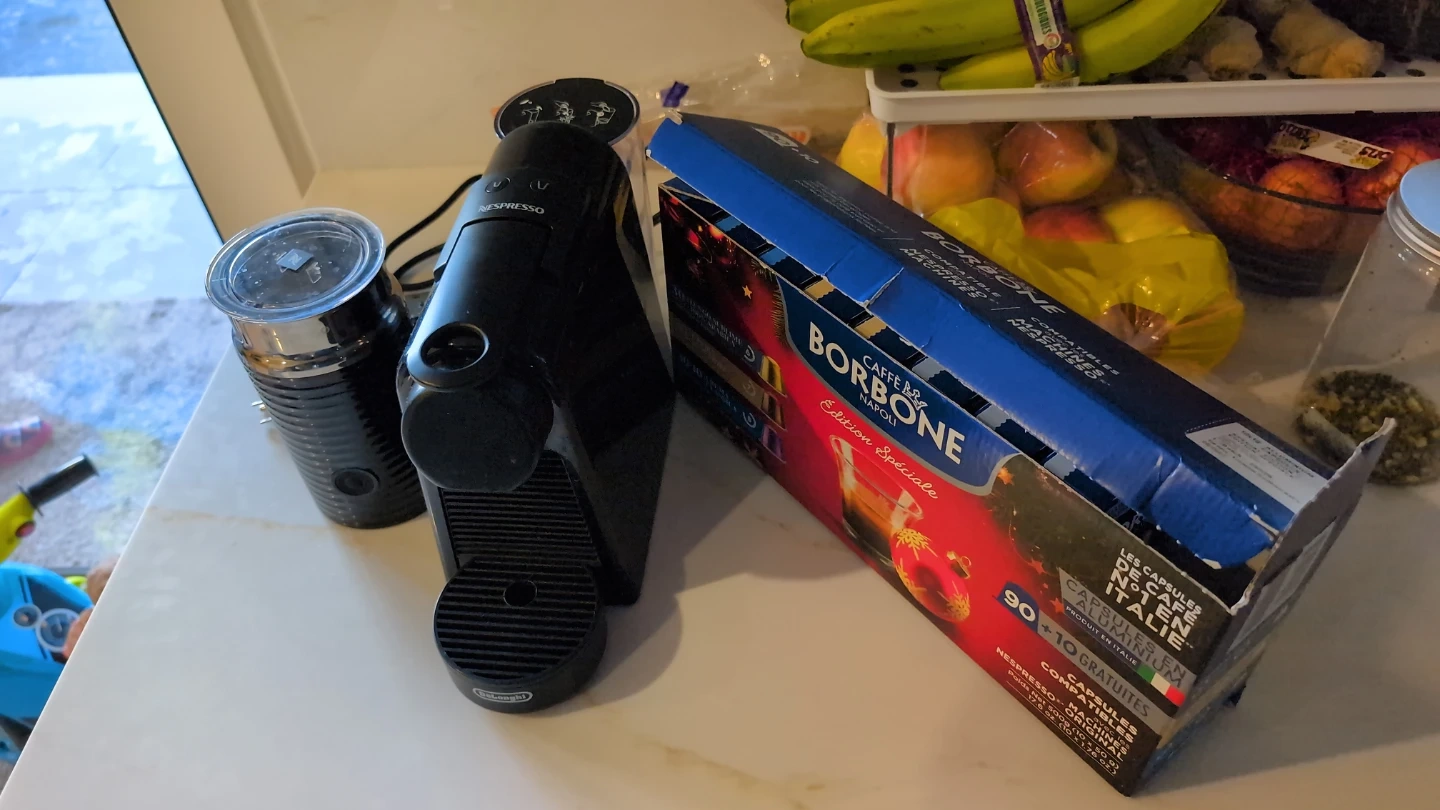 Selling a Nespresso machine w/Milk frother, perfect for making your favourite espresso drinks at home! It comes with a box of *80* Borbone Caffe Napoli Edition Spéciale capsules that are compatible with Nespresso machines. Enjoy great coffee with this convenient setup.