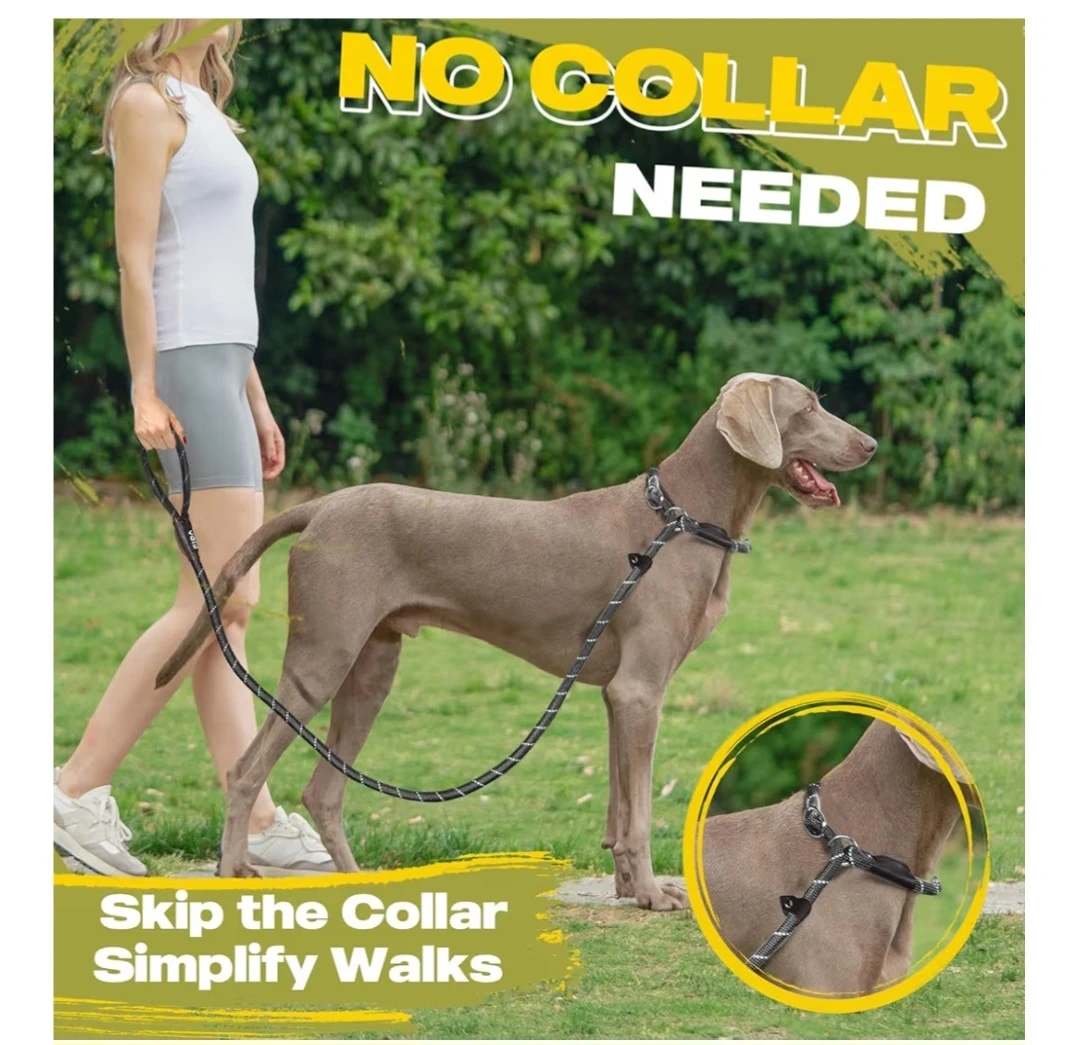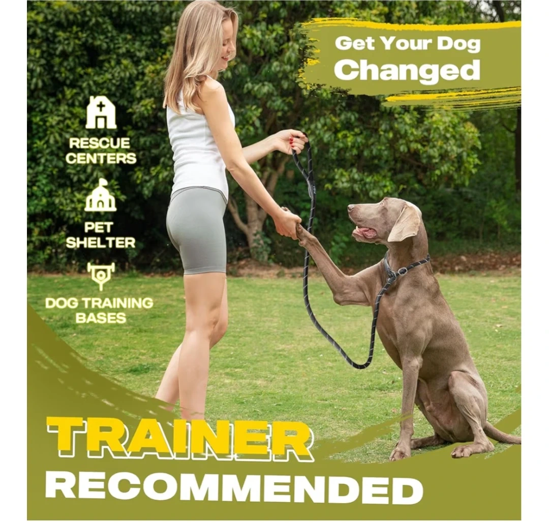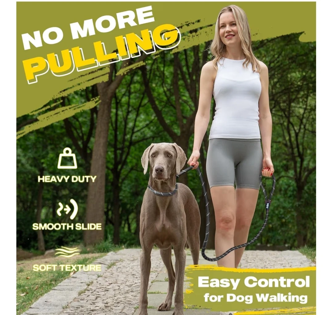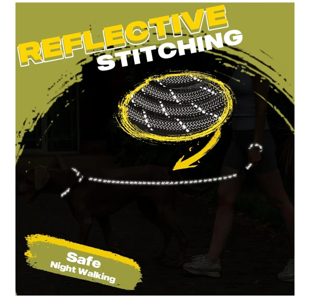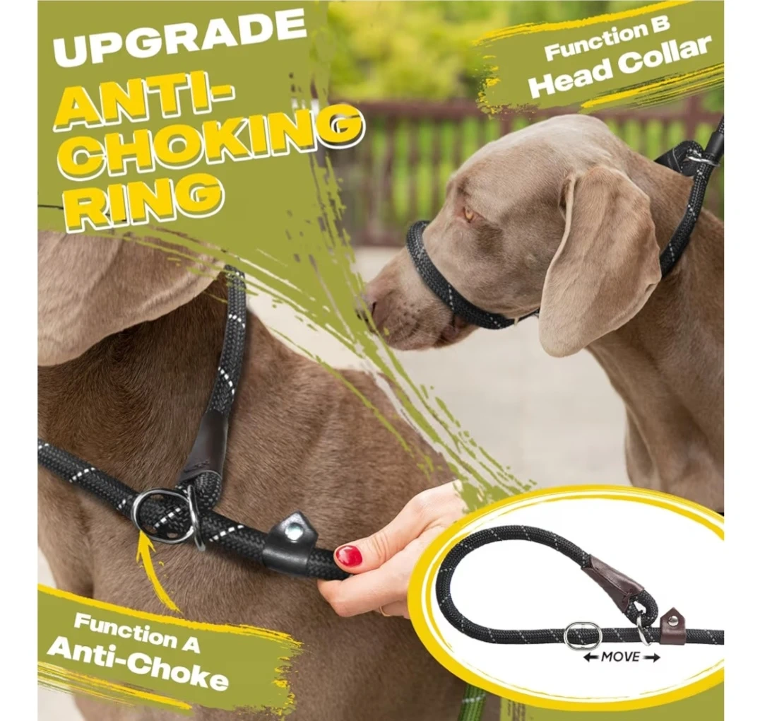 Dog rope slip lead leash is perfect for training or walks. It's black with reflective stitching for safe night walking. The rope diameter is 1/2" (13mm).