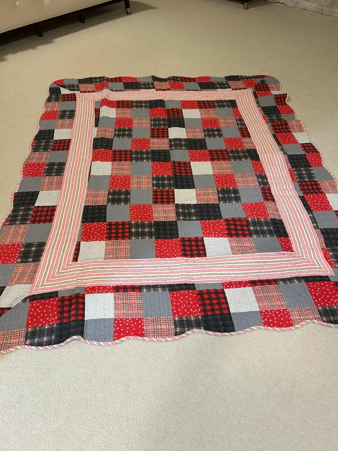 Red, Grey, Black Patchwork Quilt