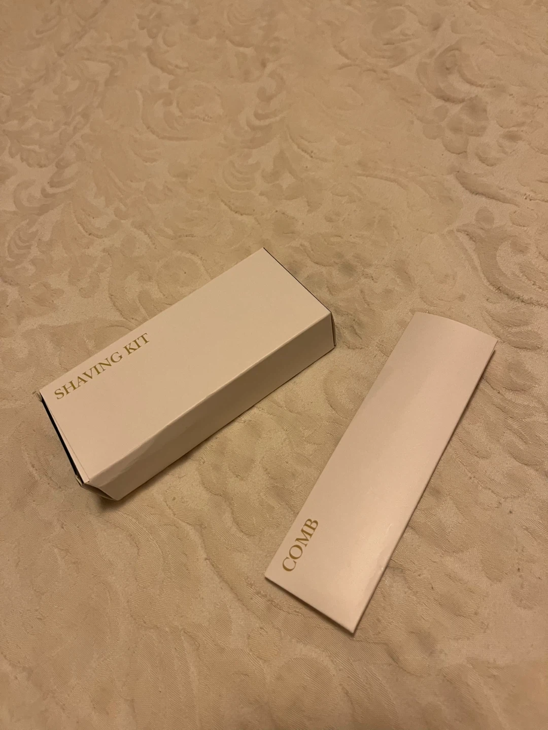 Giving a brand new shaving kit and comb, still in its original packaging. Handy for travel.