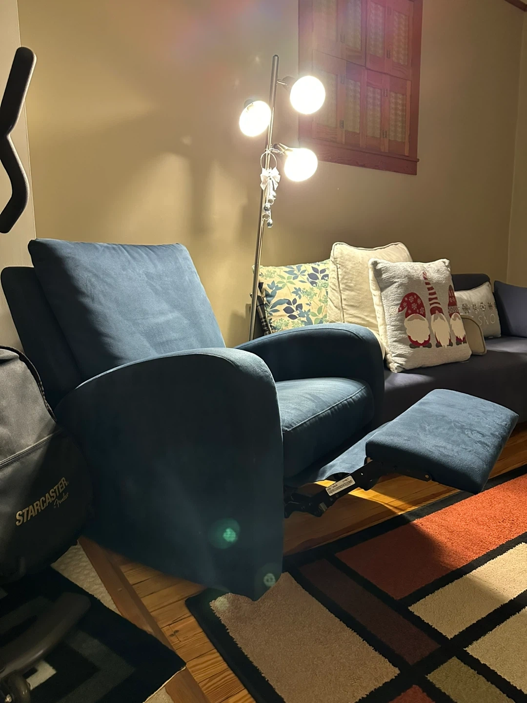 Buy & SellBlue Recliner ChairBlue Recliner Chair$315Comfortable blue recliner chair in good condition. Perfect for relaxing after a long day!ConditionLike newWHERE TO MEETWallington NJView MapSELLERArturo VargasWallington50 reviews0 chats·0 favorites·30 viewsSEND CHAT TO SELLERHi Arturo Vargas! I’m interested in your listing.Hi Arturo Vargas! I’m interested in your listing.Get the Karrot app to chatSign In to chat
