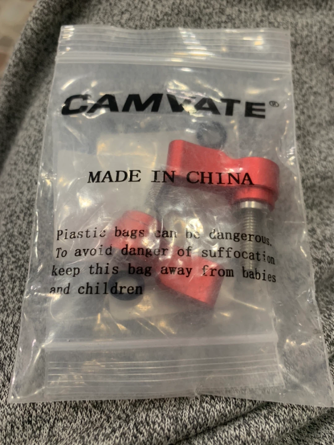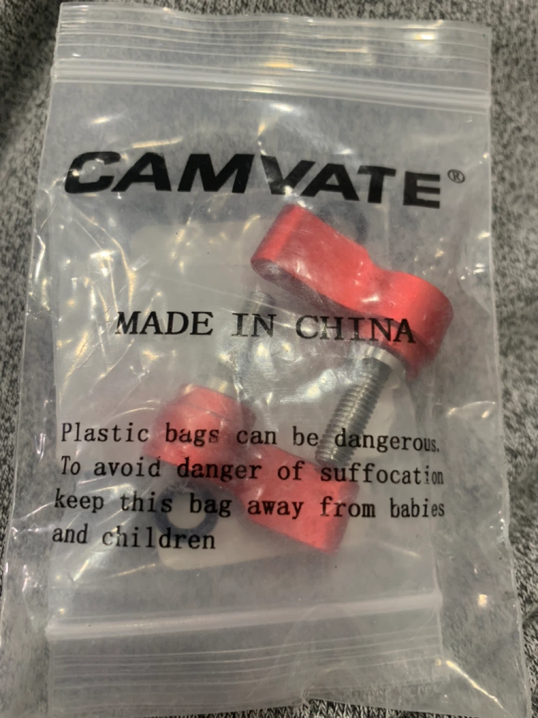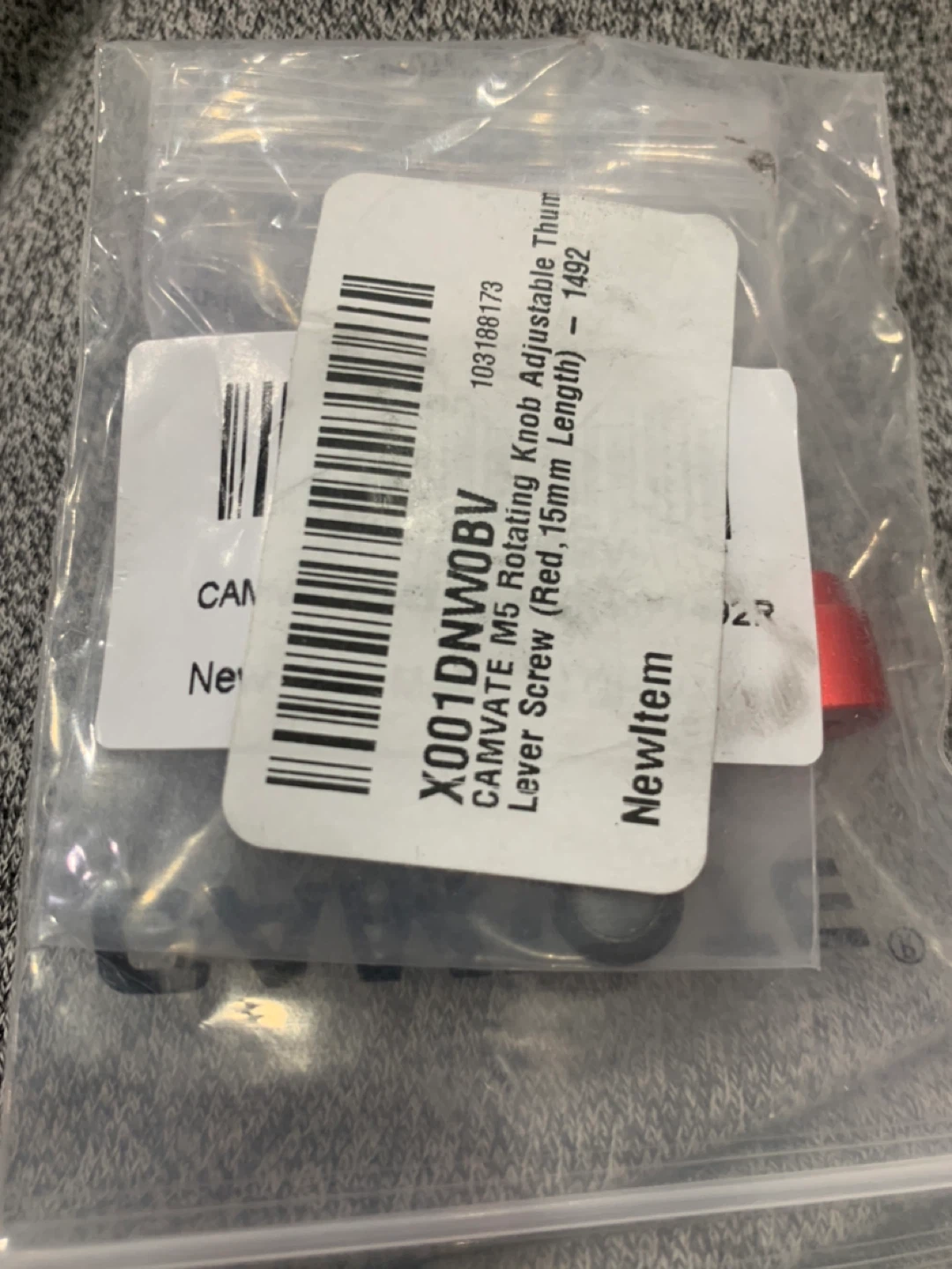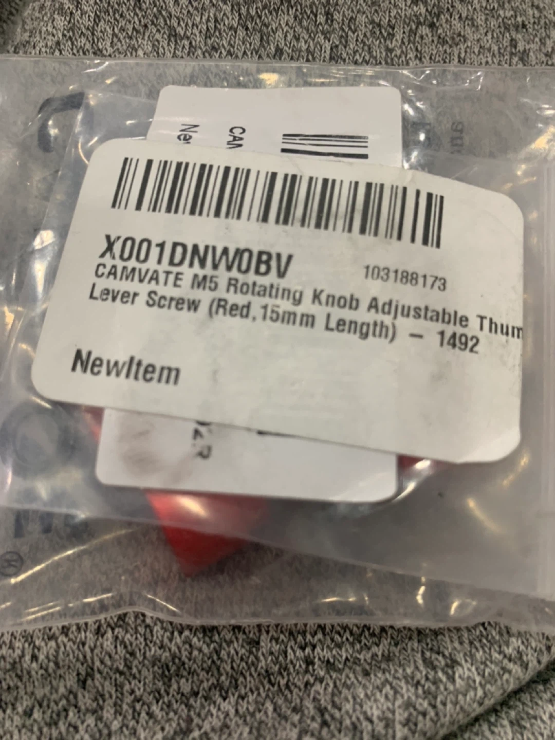 Selling a new CAMVATE M5 Rotating Knob Adjustable Thumb Lever Screw in red. The length is 15mm. Perfect for camera rigs or other equipment requiring adjustable levers!