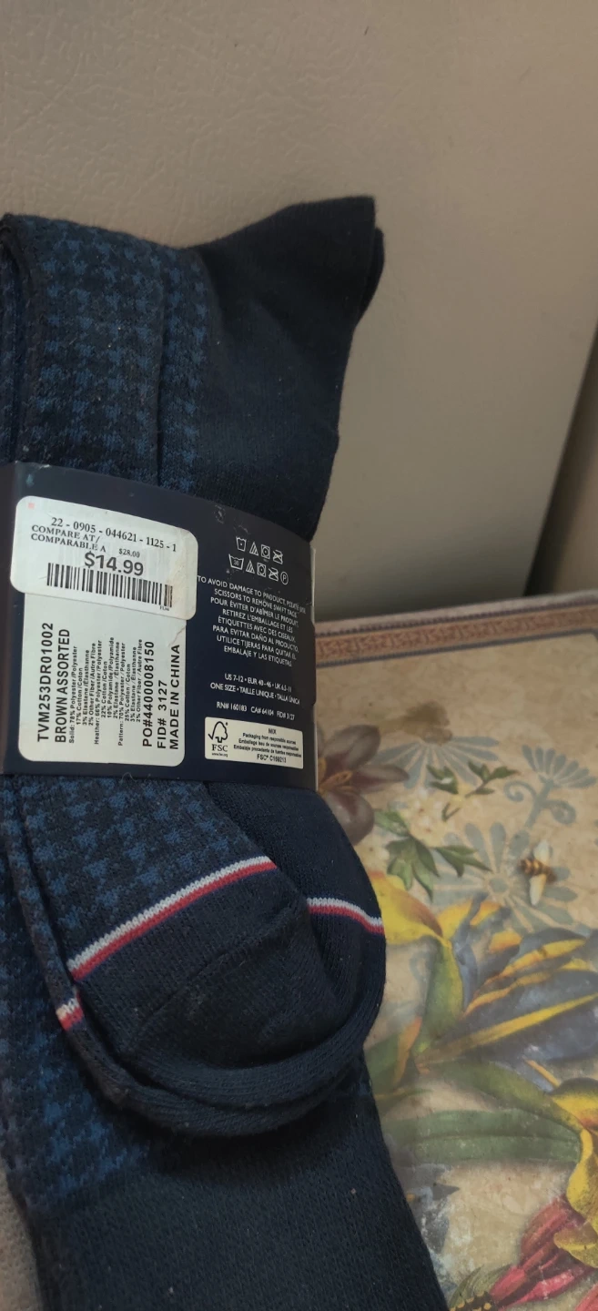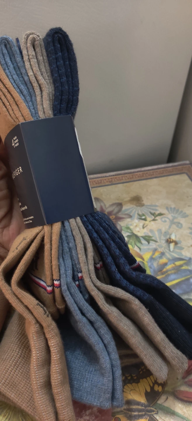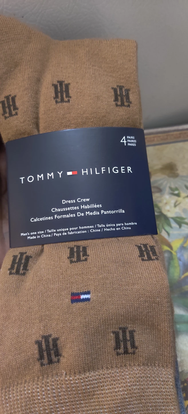 Here's a set of Tommy Hilfiger dress crew socks. This pack comes with four pairs in assorted colours. They're men's one size Originally priced at $14.99!