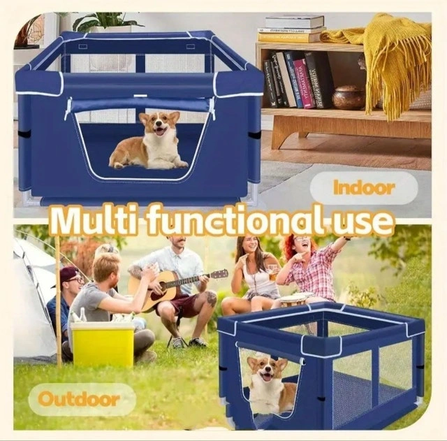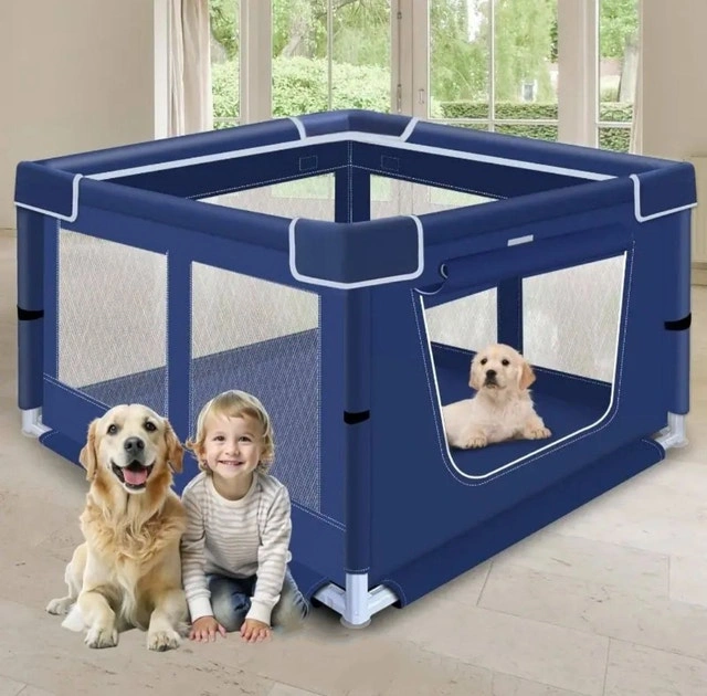 Give your furry friend a safe, comfortable, and spacious place to play, rest, and relax with this Heavy-Duty Puppy Playpen. Designed for puppies, small dogs, and breeds up to 100 lbs, this pen offers an open front design with a secure gate, allowing easy access while keeping your pet contained. The breathable mesh panels provide excellent airflow, and the easy-clean flooring keeps messes under control—perfect for both indoor and outdoor use. Best of all, no assembly is required—just unfold and set it up in seconds.