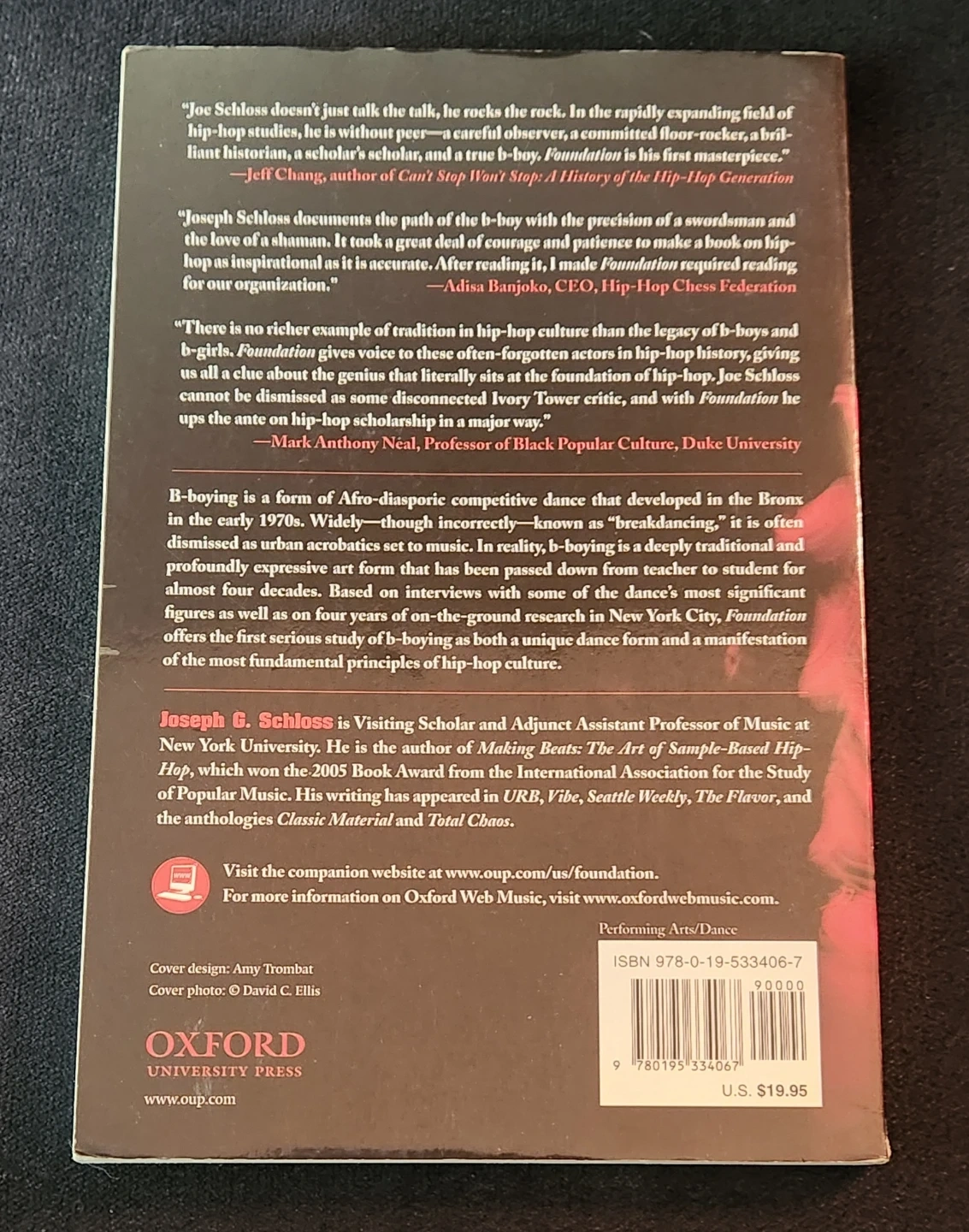 Based on interviews with many of the dance's most significant figures as well as on four years of on-the-ground research in New York City, Foundation: B-boys, B-girls and Hip-Hop Culture in New York offers the first serious study of b-boying--commonly known as "breakdancing"--the pre-eminent form of hip-hop dance. While breakdancing is often dismissed as a fad that died in the eighties, Joseph Schloss explains that the dance's true form--known as b-boying--lives on in underground venues around the globe. This almost four-decade-old dance of the African Diaspora boasts a complex set of aesthetic principles, a fiercely competitive attitude, a unique and powerful musical repertoire, and a profound sense of its own history. Schloss, who learned to b-boy as part of the research for this book, presents an inside look at a dance that counts seventies gang culture, African religious tradition, professional gymnastics, and Black vaudeville among its major influences. Featuring chapters on music, pedagogy, aesthetics, space, battling, and history, Foundation explores a dance form that is at once aggressive and spiritual, raw and sophisticated, viscerally exciting and deeply introspective.