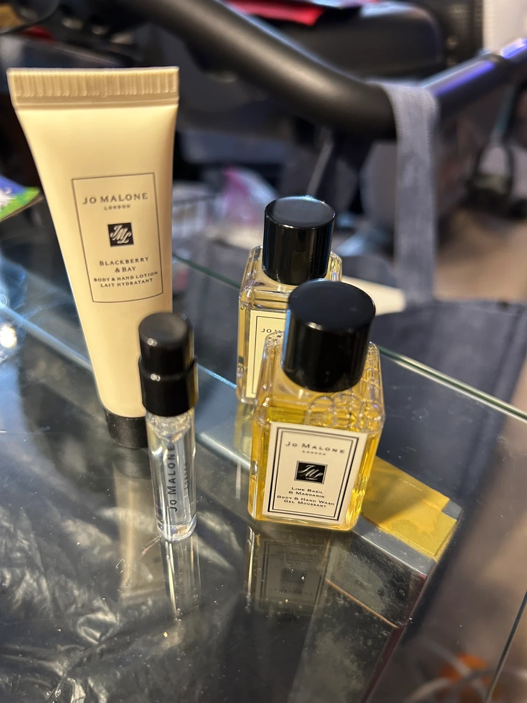 Selling a Jo Malone Blackberry & Bay Body & Hand Lotion and two Lime Basil & Mandarin Body & Hand Wash. One purse size English Pear and Freesia spray. Perfect for trying out these lovely scents