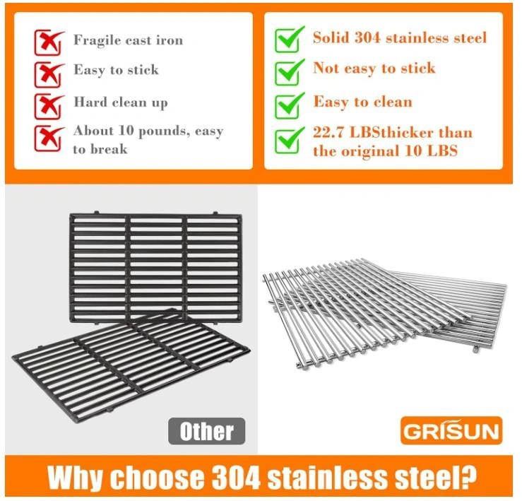 Built with non-magnetic 304 stainless steel, these Grill Grates are rust-resistant, warp-proof, and heat-efficient. The 7mm solid rod design provides even heat distribution and leaves beautiful grill marks on your food.