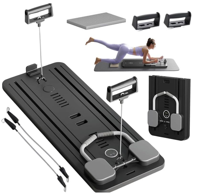 Pilates Board with Automatic Rebound Function, Multifunctional Abdominal Board Automatic Rebound Ab Roller Wheel, Pilates Equipment with Knee Pad.