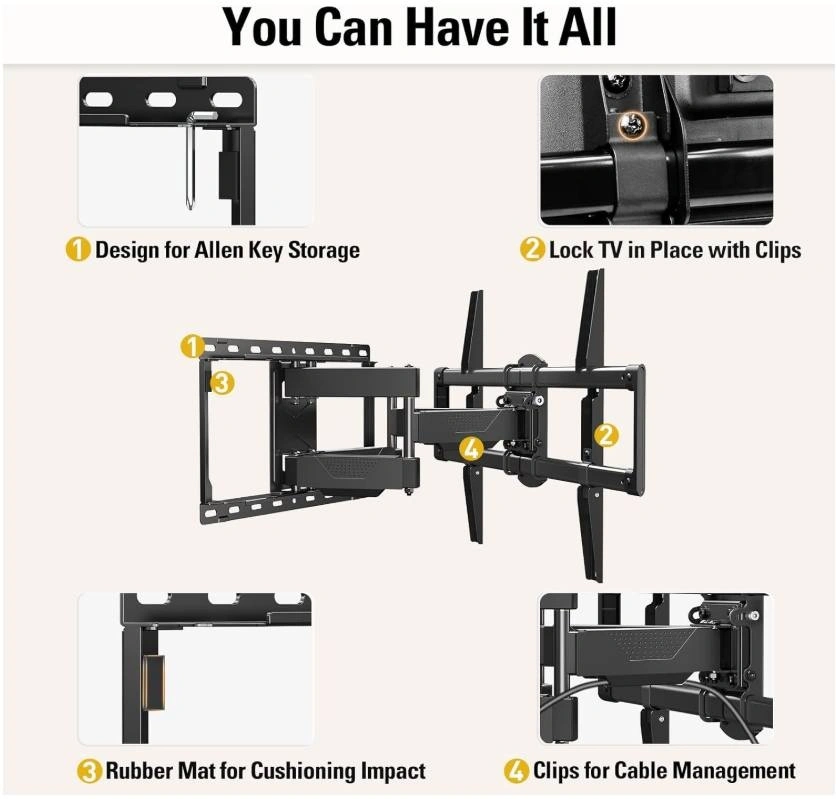TV Wall Mount. 42-84 Inch, Full Motion with Swivel and Tilt