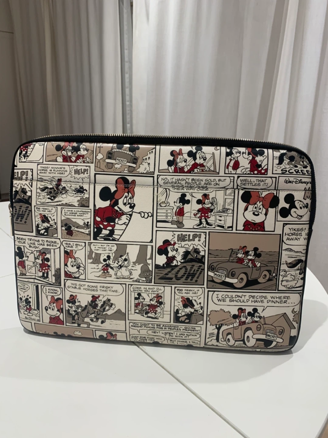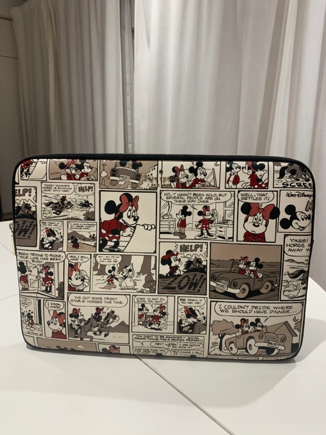 ❤️ Selling a Kate Spade laptop case featuring a fun Disney Mickey Mouse comic strip design! It's perfect for adding a bit of character while keeping your laptop safe and secure. The case has a zipper closure and an exterior slip pocket, making it super practical for everyday use