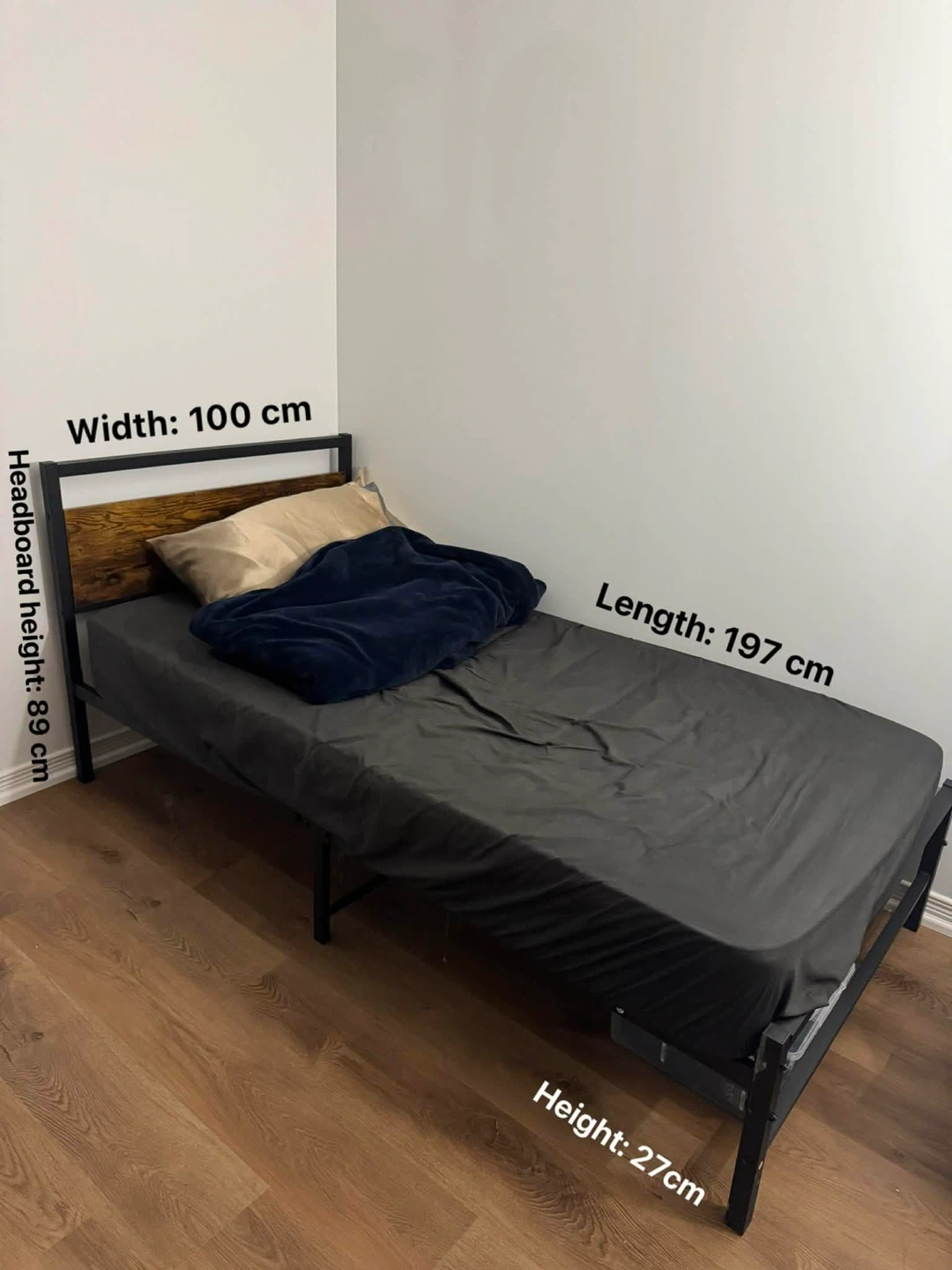 ⭐️ Twin Size Metal Bed Frame with Wooden Headboard ⭐️