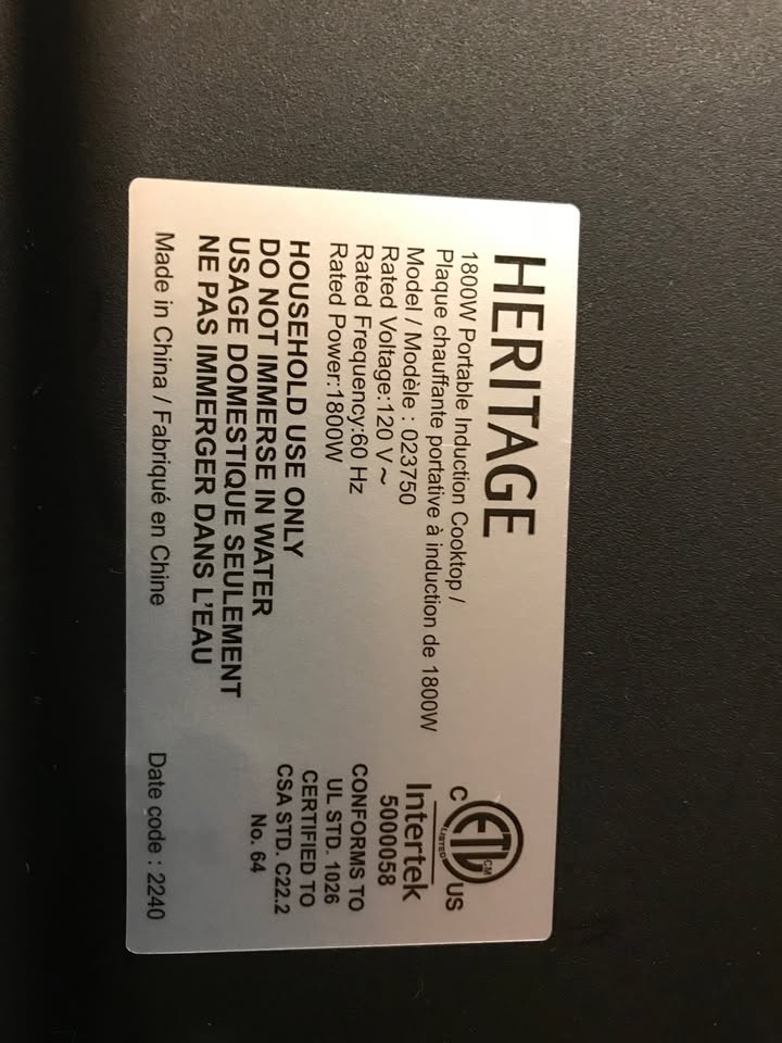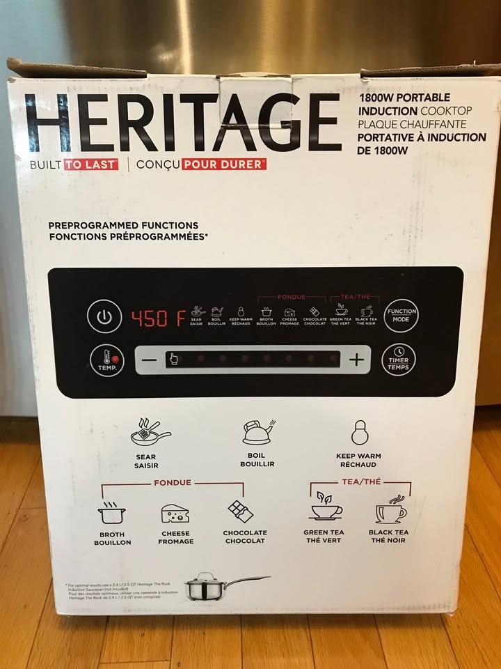 Heritage induction cook top in good working order. Only use a few times no longer need. PU: Winston Churchill Blvd & Burnhamthorpe Rd W. in Mississauga.