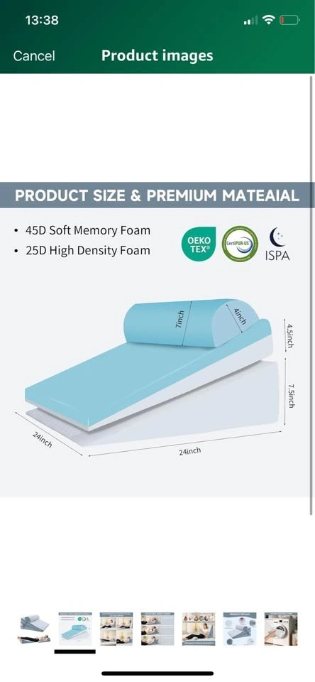 Bed Wedge Pillow for Sleeping, 3 Pcs