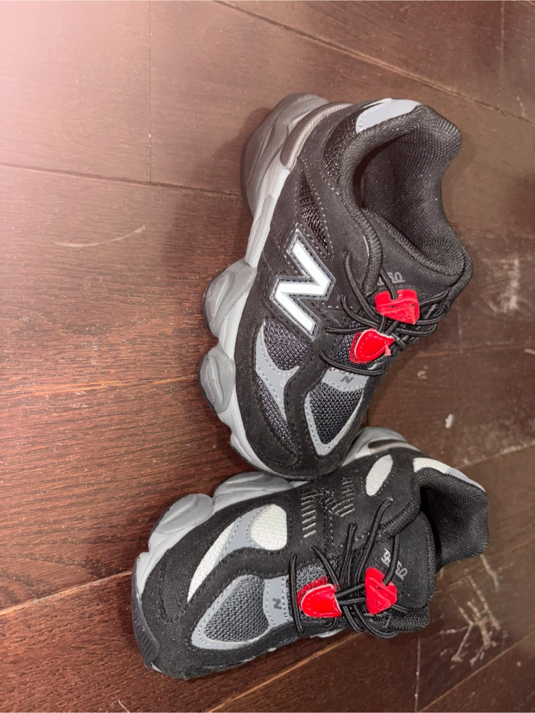 Selling a pair of New Balance 9060 sneakers in a stylish black and grey colorway. These shoes are in great condition and ready for a new owner! They feature a comfortable design and are perfect for everyday wear.