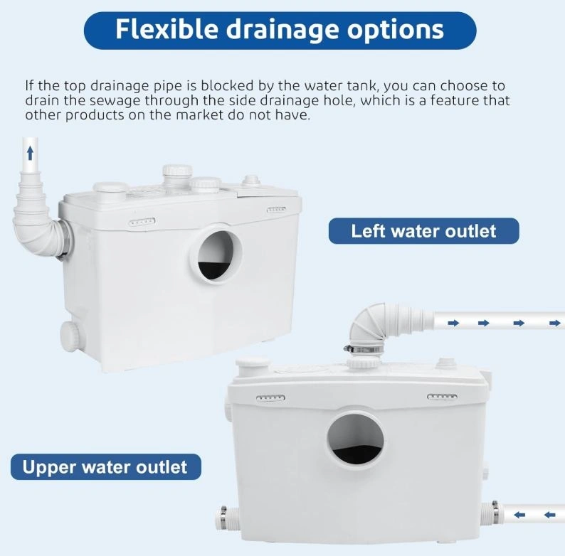 Efficient 800W Maceration Power: This high-power macerating toilet is equipped with a robust 800W Copper-wire motor, quieter noise, more powerful performance, ensuring effective pulverization and effortless waste removal.