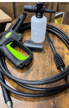 The electric power washer is equipped with a hose lock and a handle safety lock. The hose lock ensures that the hose has better access to the washer and will not come off and cause spills. After use, turn off the faucet and press the switch on the handle to equalize the pressure and make it easier to pull out the hose with the hose lock on. The safety lock on the handle prevents accidental touching and makes the machine safer to use.