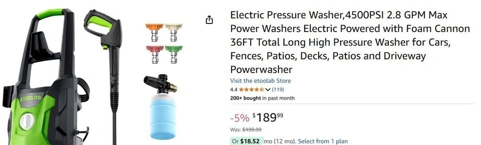Electric Pressure Washer, 4500PSI 2.8 GPM with 36FT