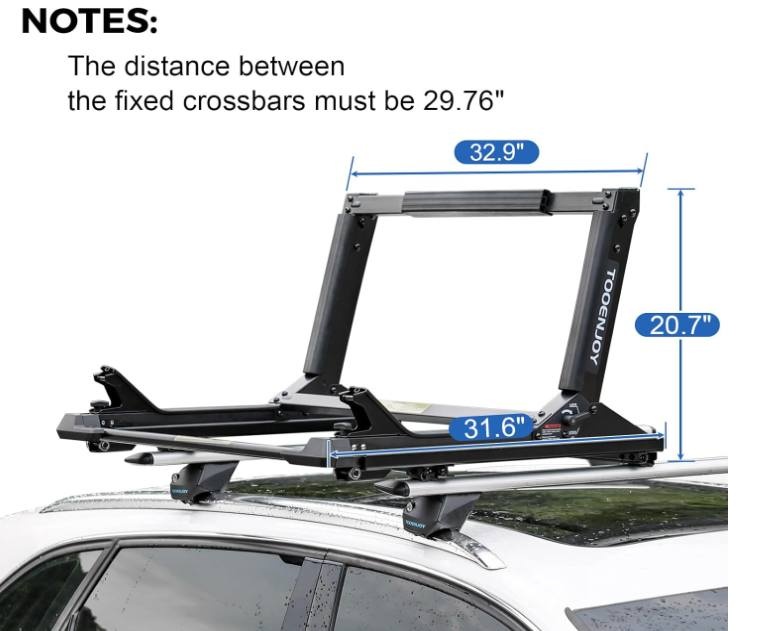 Requires extended and adjustable crossbars. Your crossbar distance should be adjustable to approximately 75.6cm to use this lift rack. If your existing crossbars are fixed/non-extend, purchase Accessory Adapter online. This accessory solves compatibility issues for many fixed crossbar setups.