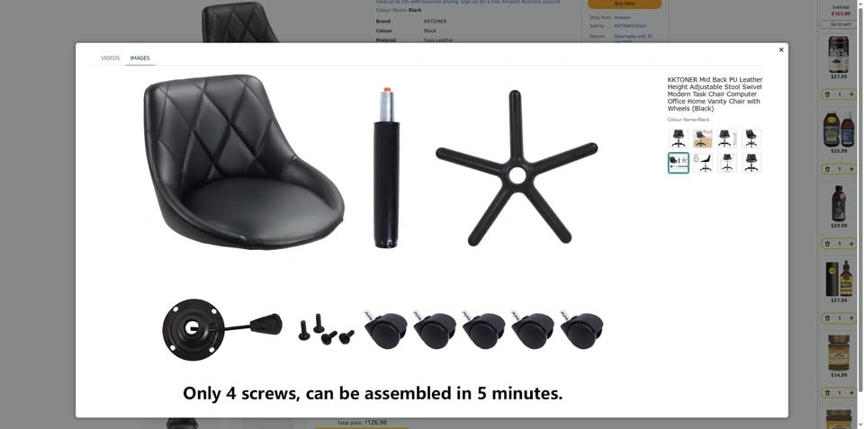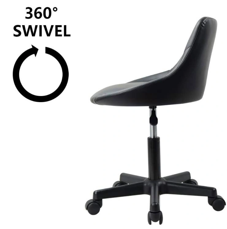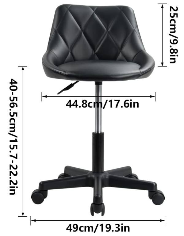 KKTONER Mid Back PU Leather Height Adjustable Stool Swivel Modern Task Chair Computer Office Home Vanity Chair with Wheels (Black)