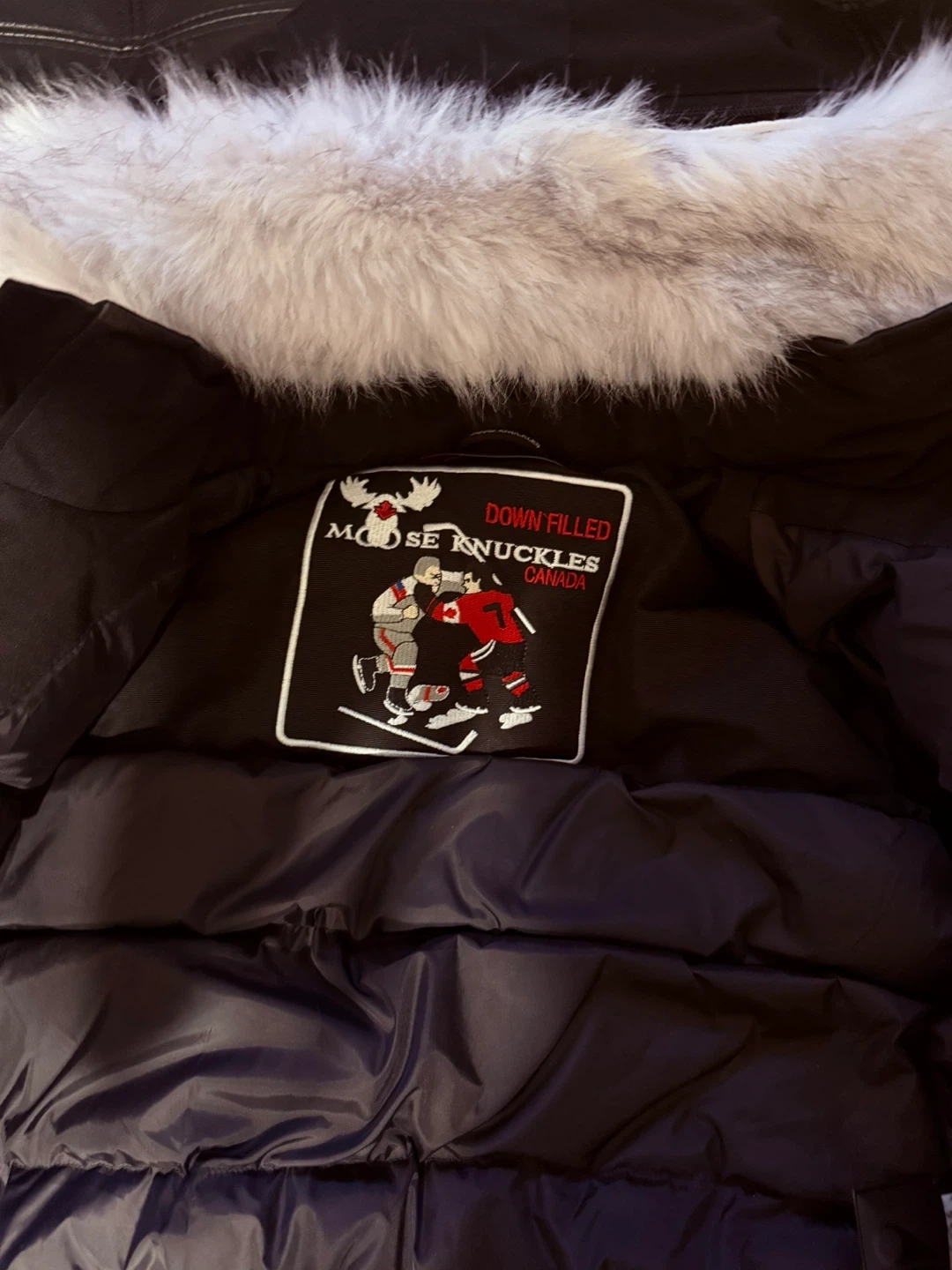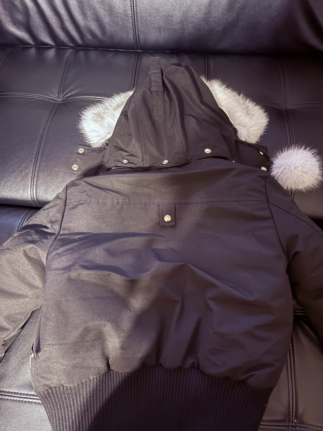 Selling a Moose Knuckles down filled bomber jacket. It's in great condition and ready to keep you warm this winter! Features include a fur-trimmed hood and the iconic Moose Knuckles logo on the sleeve