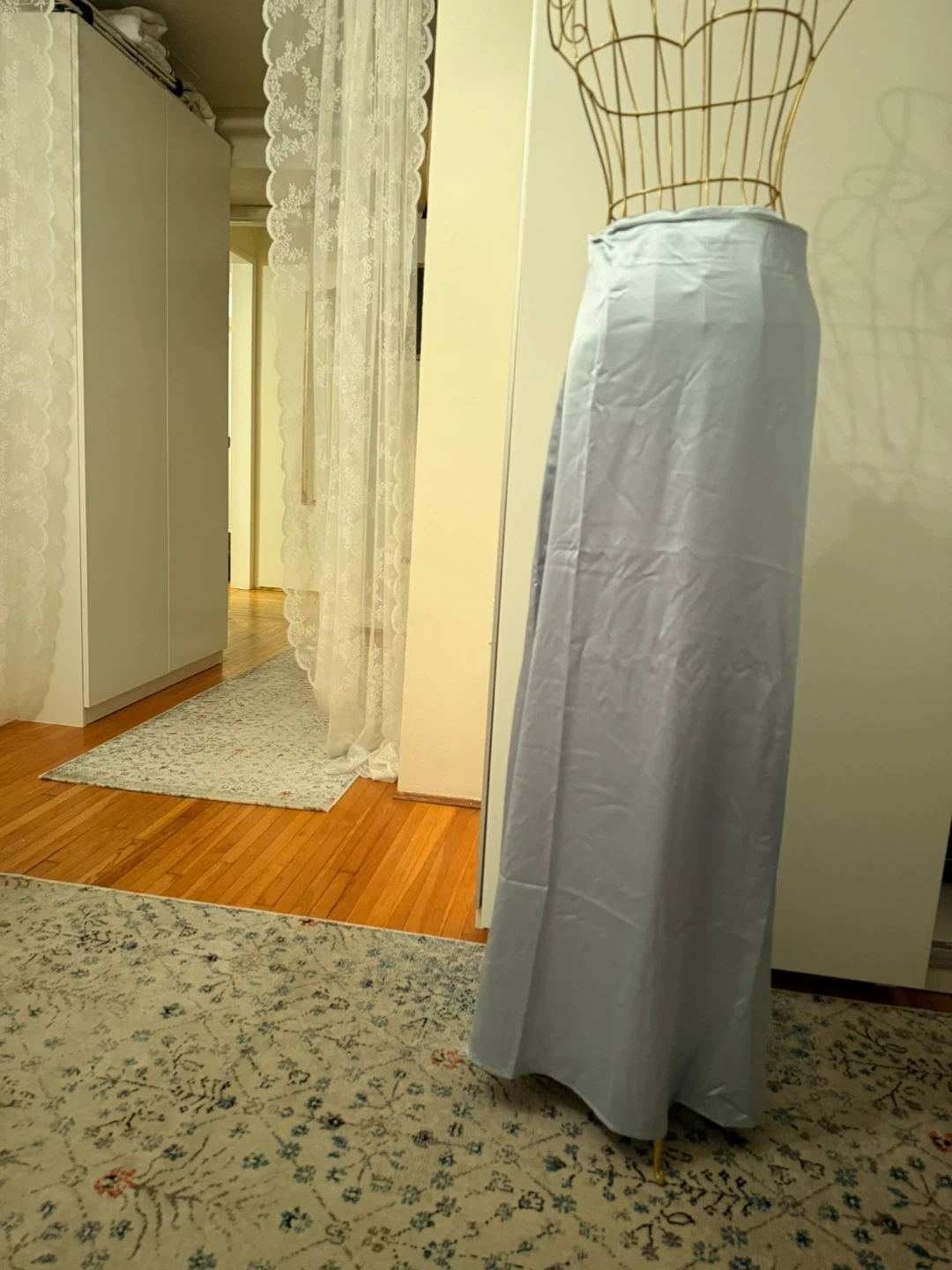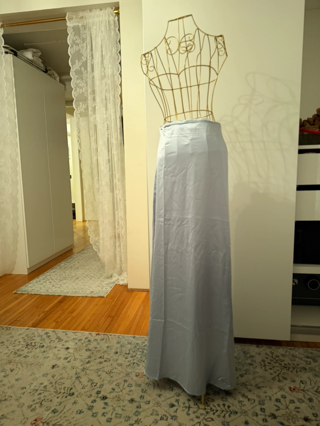 Selling a Fashion Nova Estella Satin Maxi Skirt in a light blue colour! It's stunning on just too big for me sadly. Never worn
