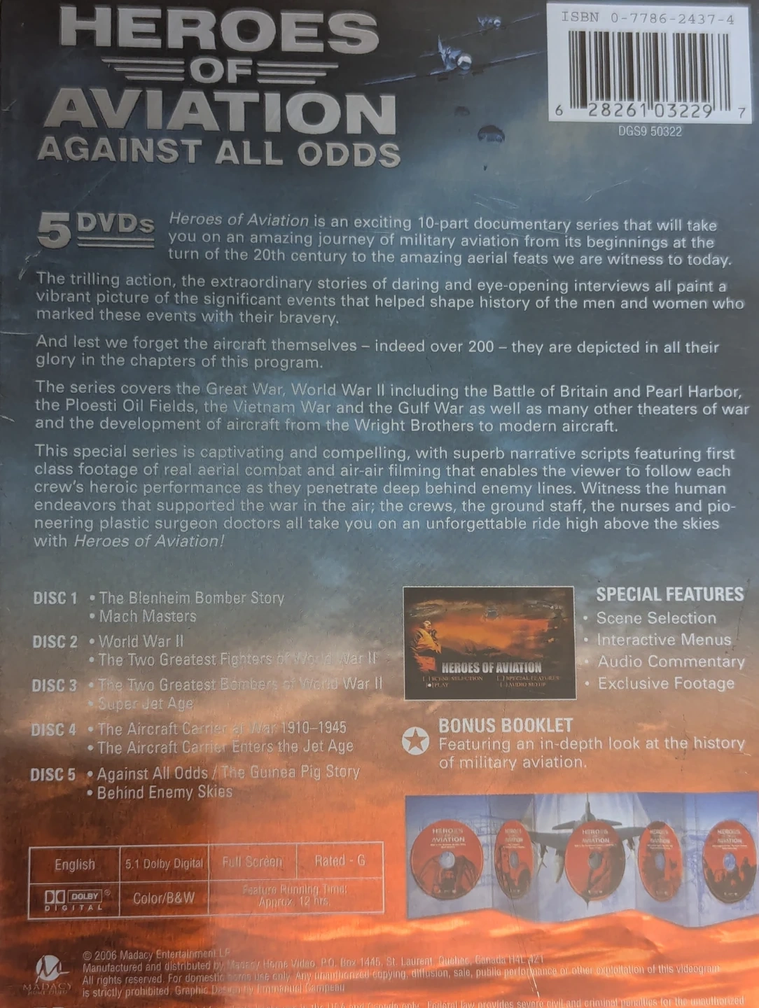 Featuring a G-rated content rating, this Madacy studio production includes additional scenes and a bonus booklet, making it an exceptional educational experience for aviation enthusiasts of all ages. This DVD format is compatible with DVD Region Code 1 (US, Canada...), and the language is in English. Don't miss this chance to own a piece of history with the Heroes of Aviation DVD 5-Disc Set Collector's Tin.