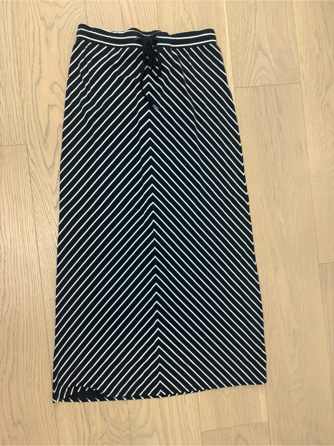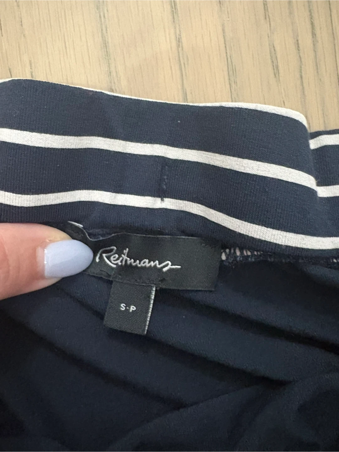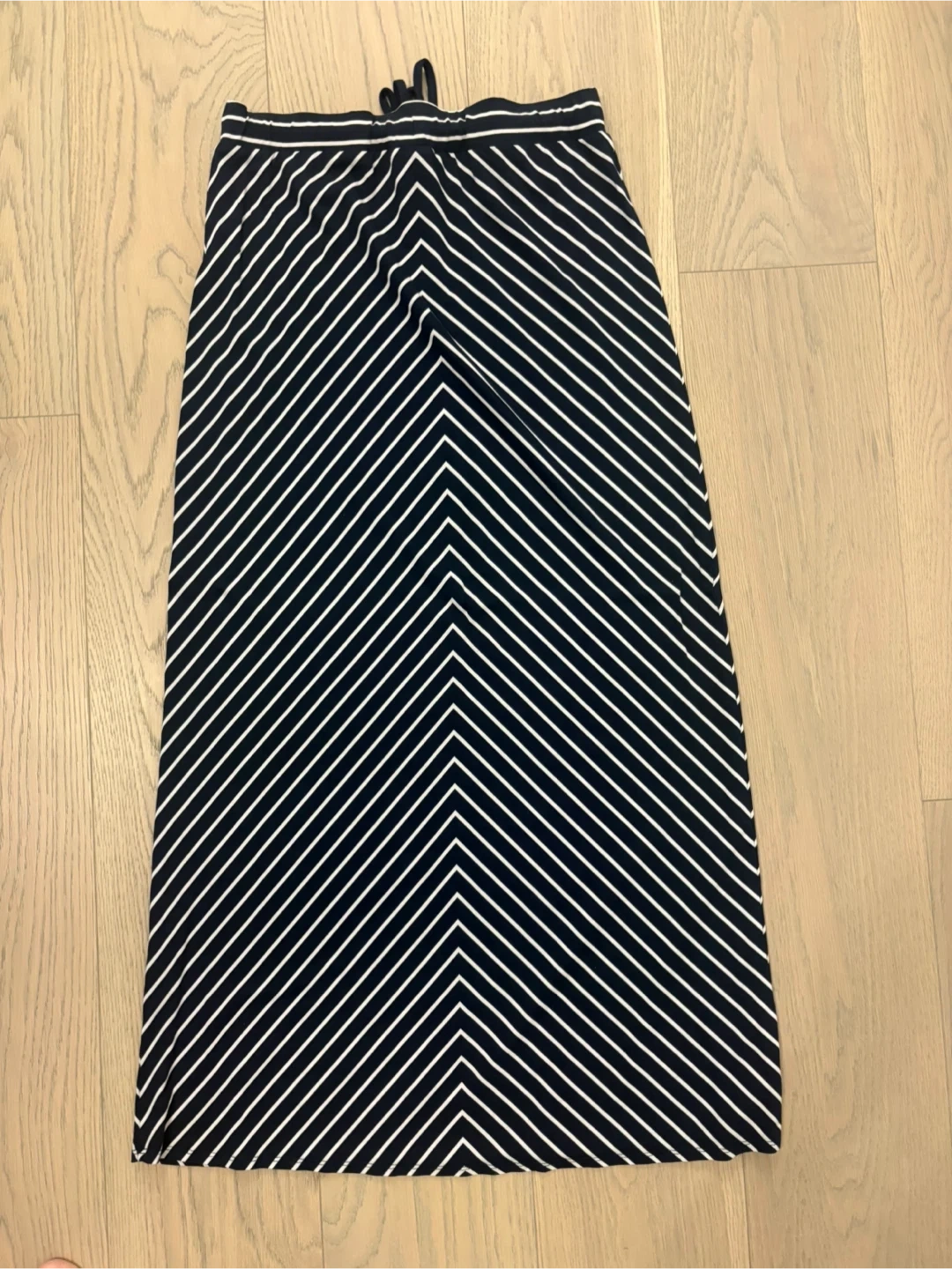 Selling a cute Reitmans skirt with a navy blue and white striped pattern. It's a size small. Perfect for a casual or dressed-up look! Very stretchy and comfortable.