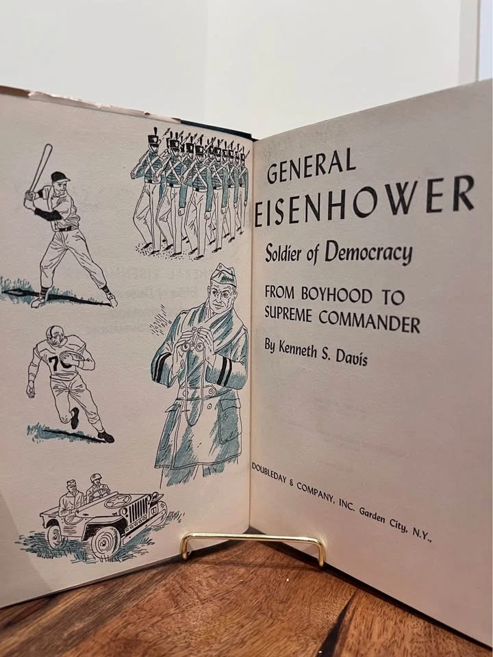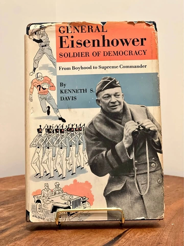 The book covers Eisenhower's life from boyhood through his military career, culminating in his role as Supreme Commander during World War II and the D-Day invasion. The illustrations and jacket design are by Paul Galdone, an illustrator best known for his work in children's literature.