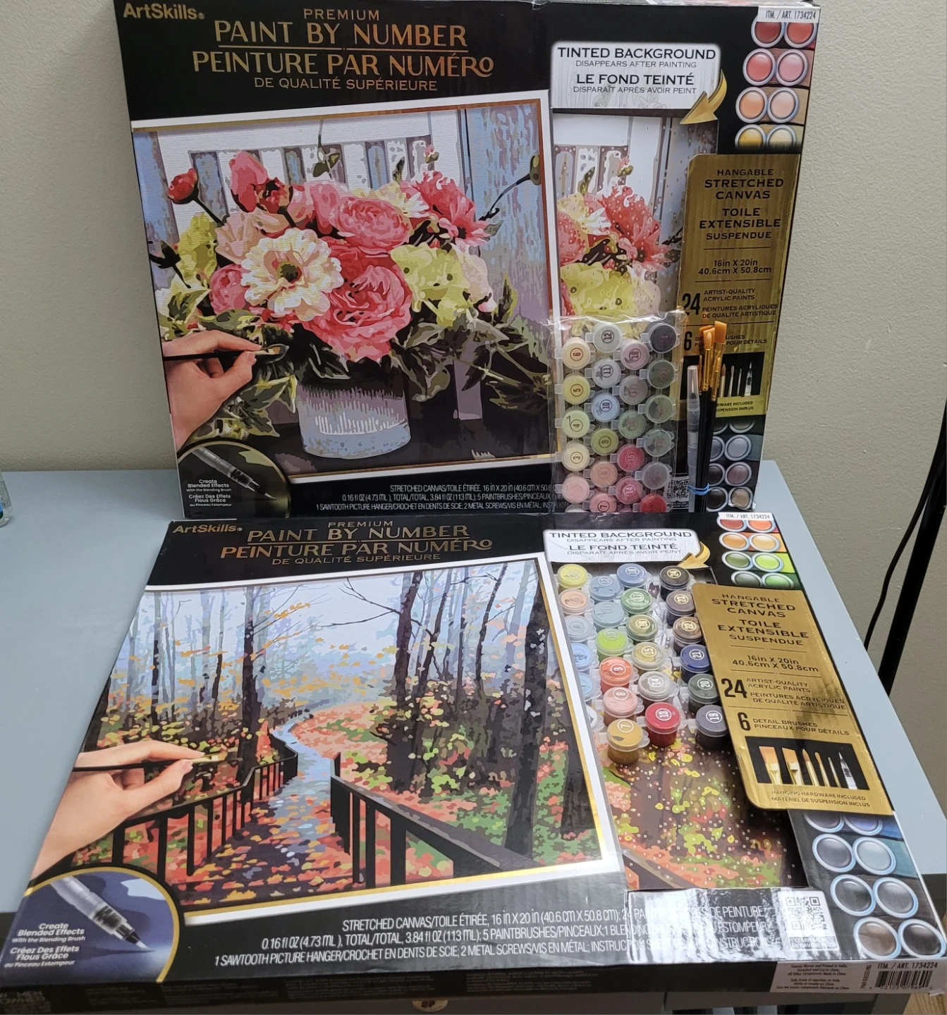 I have two ArtSkills Premium Paint by Number kits for sale. Both are brand new and include everything you need to create your own masterpiece! Each kit includes: