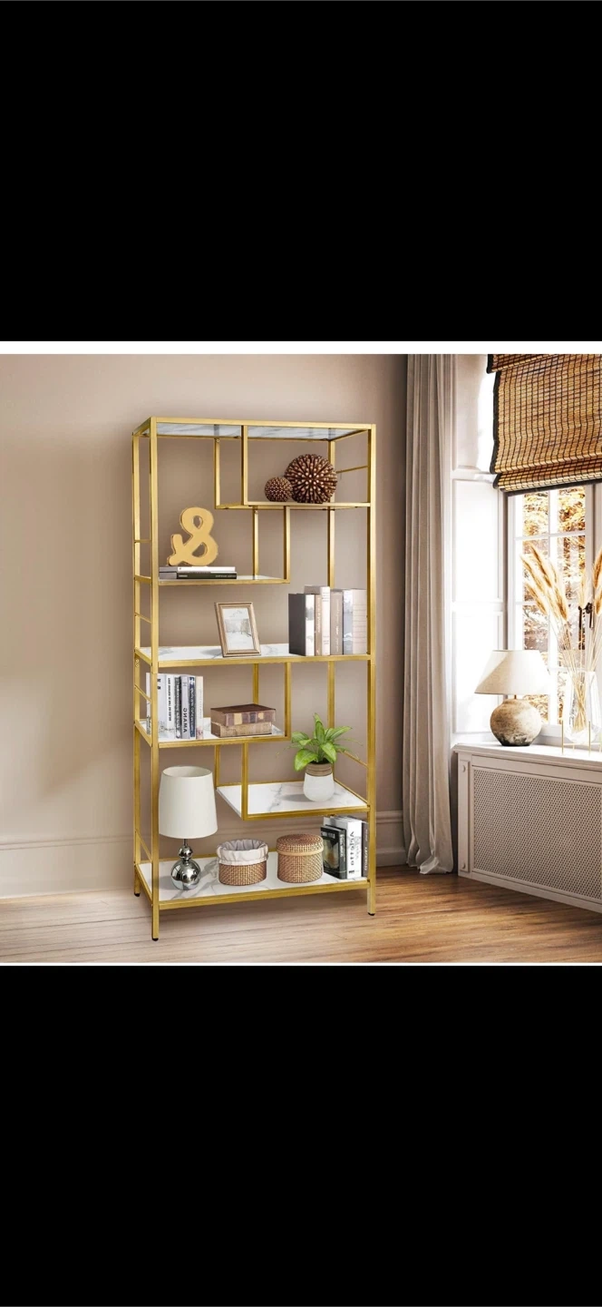 Brand new 6-Shelf Bookshelf - Gold/Marble