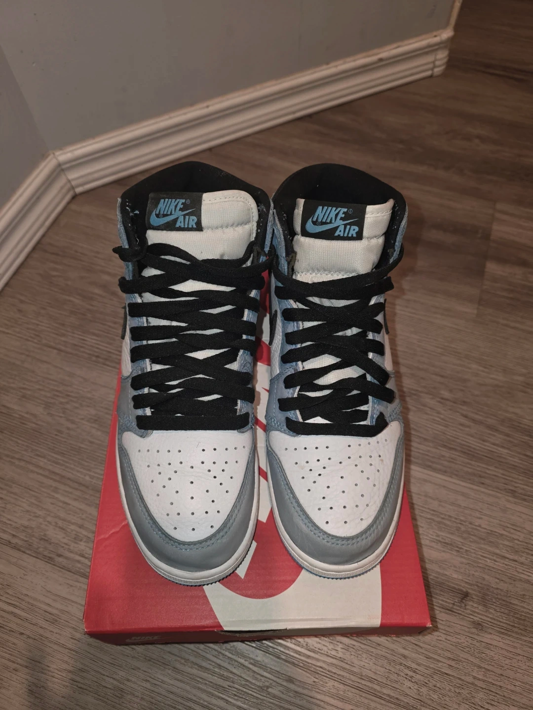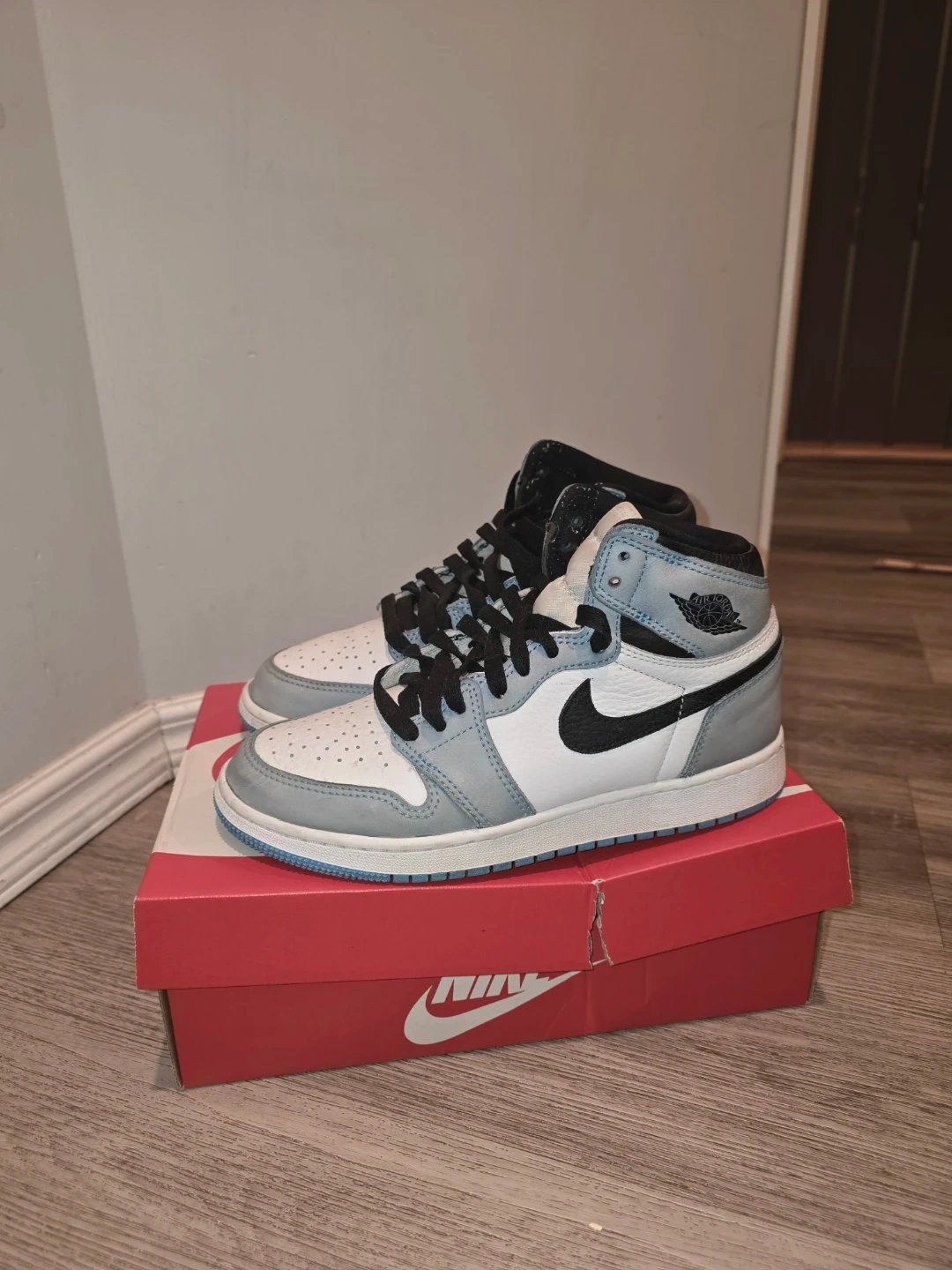 Selling a pair of Nike Air Jordan 1 Retro High in the University Blue colourway! They are in good condition and come with the original box. A classic pair of shoes that will go with any fit!
