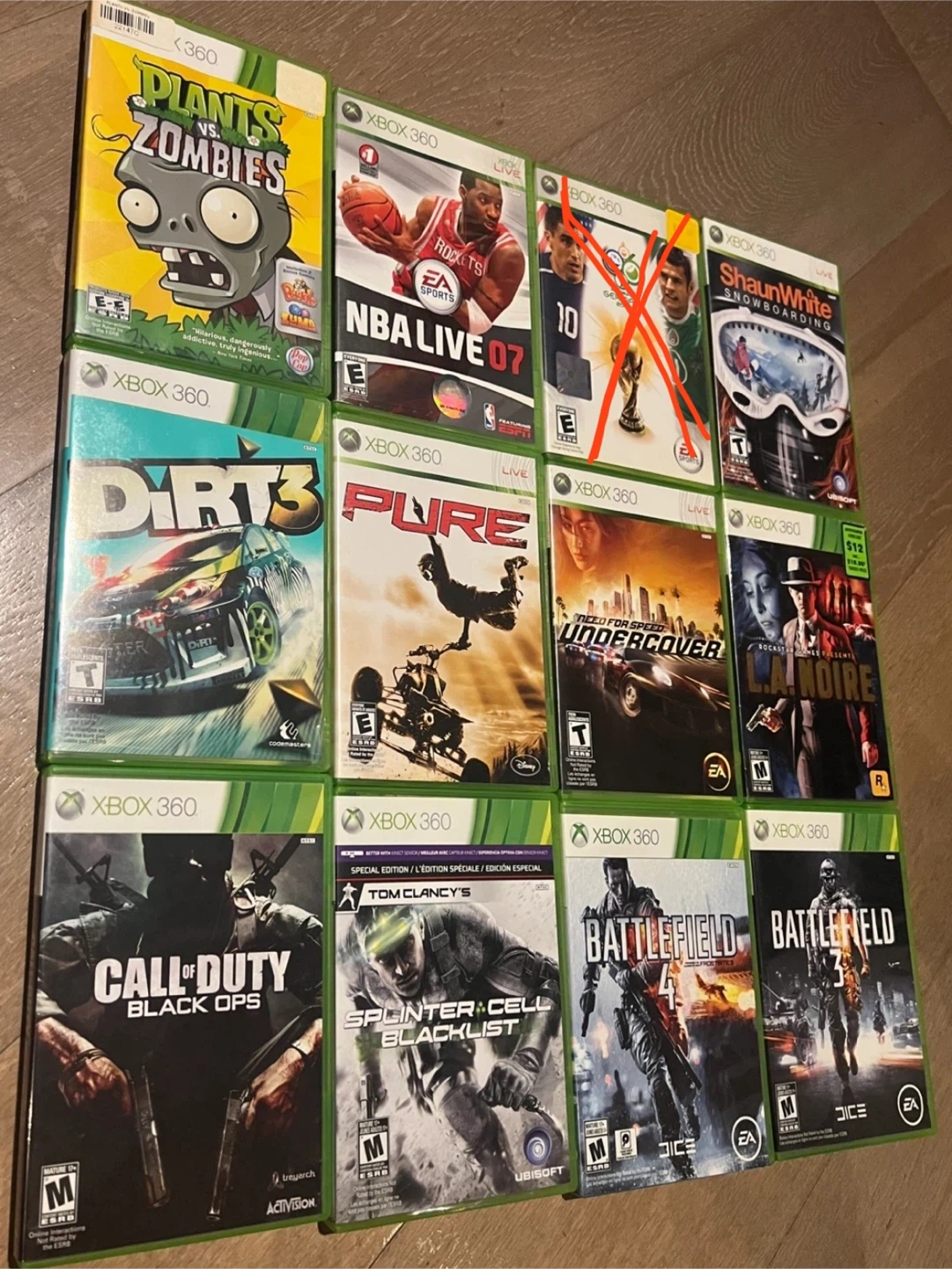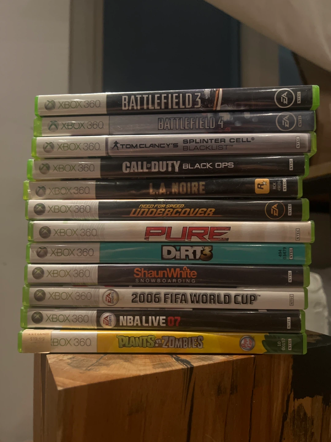 Selling a collection of Xbox 360 games! Titles include Battlefield 3 and 4, Splinter Cell Blacklist, Call of Duty Black Ops, L.A. Noire, Need for Speed Undercover, Pure, Dirt 3, Shaun White Snowboarding, NBA Live 07, and Plants vs Zombies.