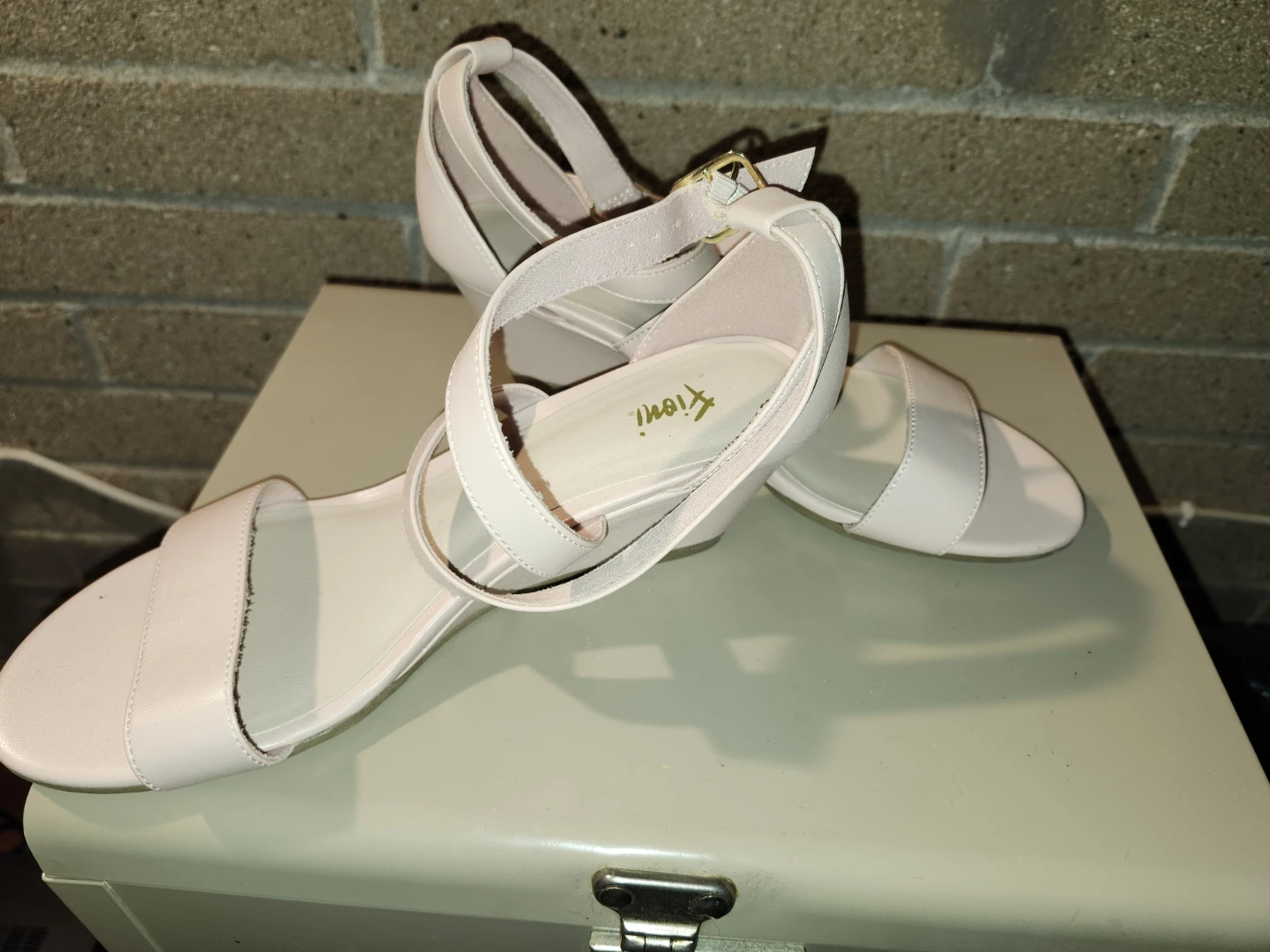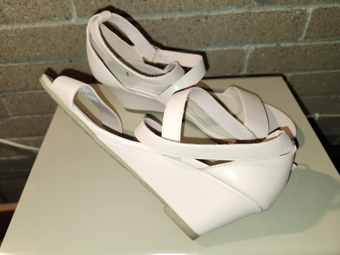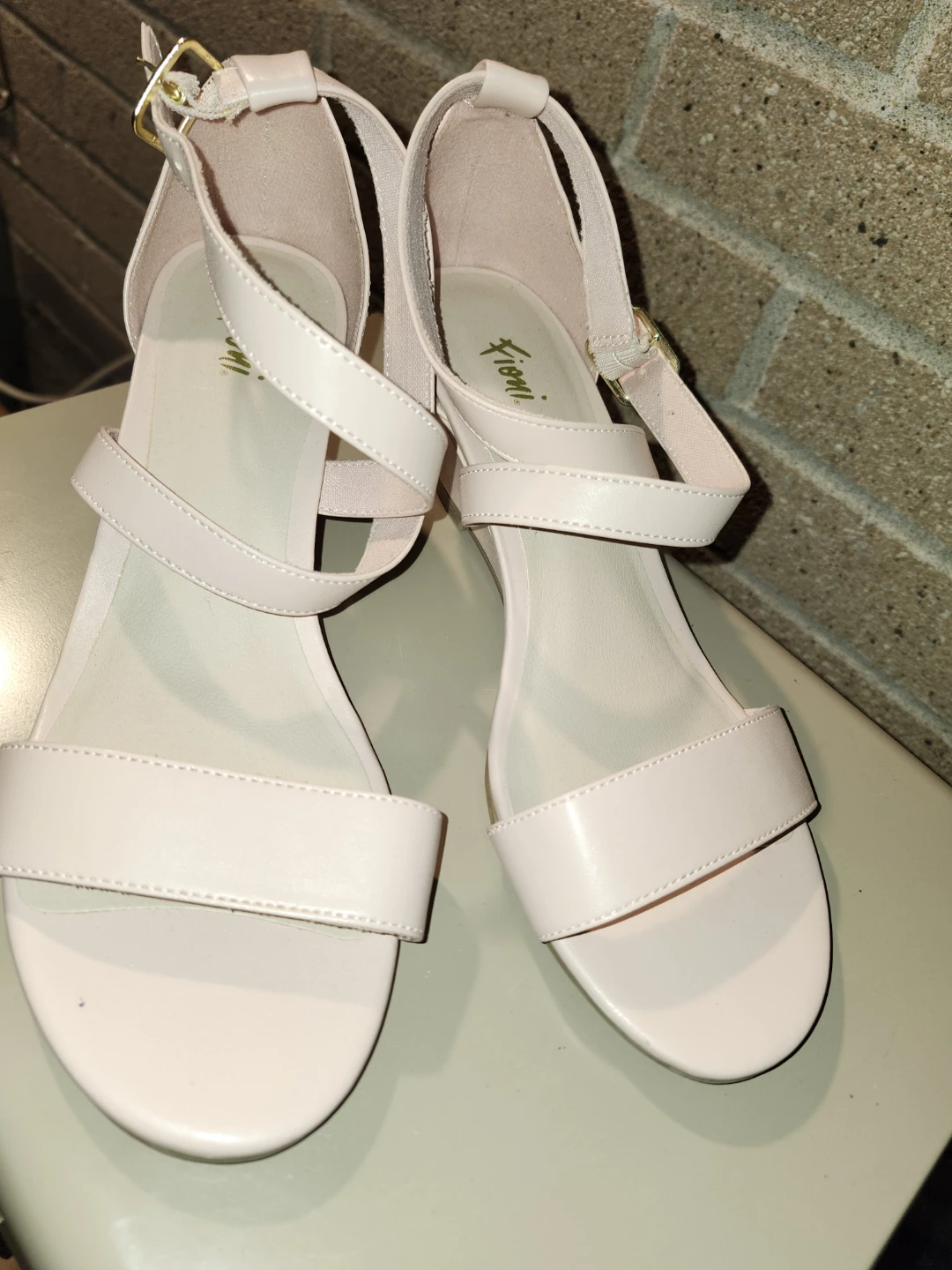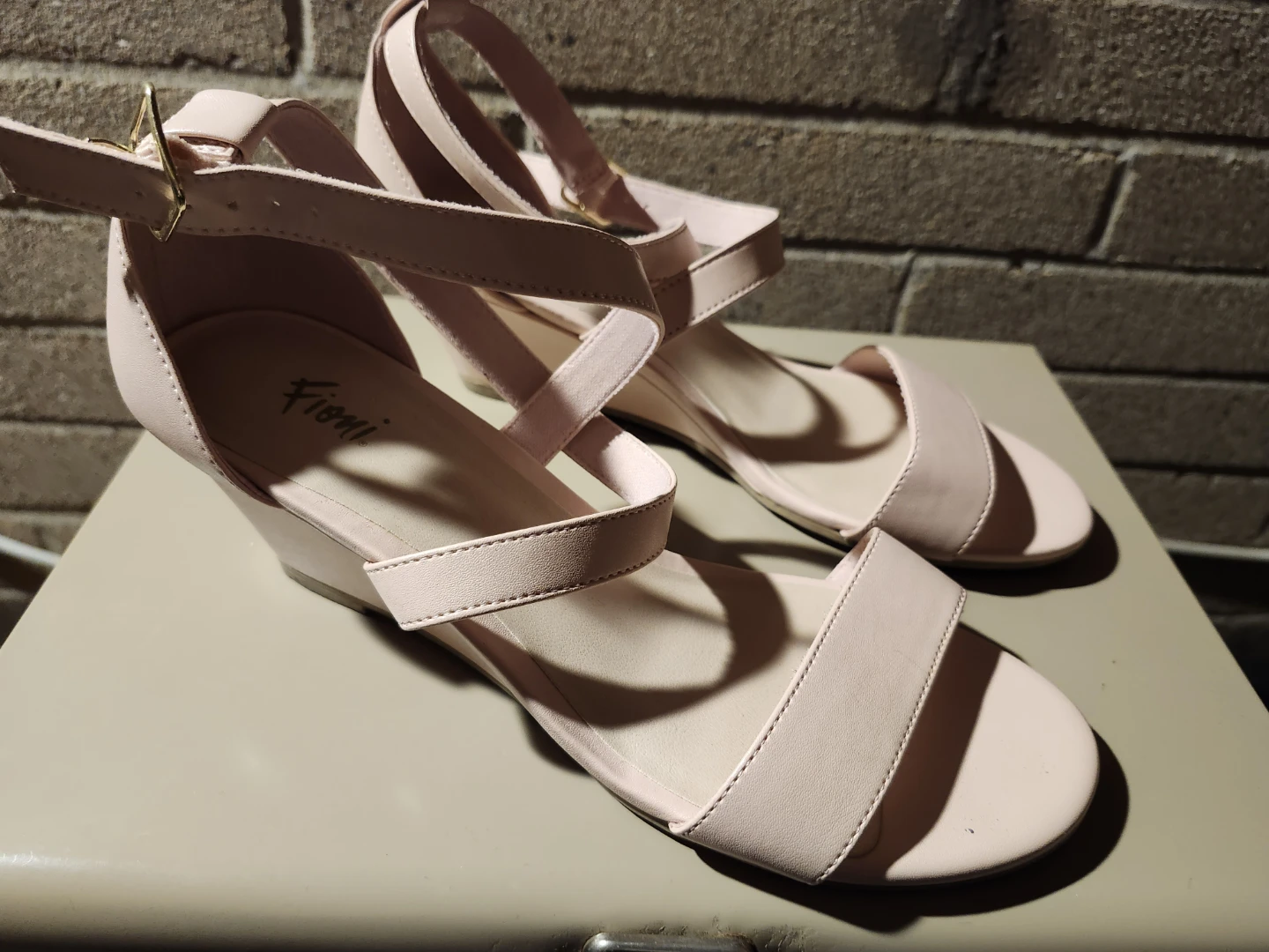 These Fioni sandals are a lovely blush pink colour! They feature a wedge heel and delicate straps. Perfect for adding a touch of elegance to any outfit