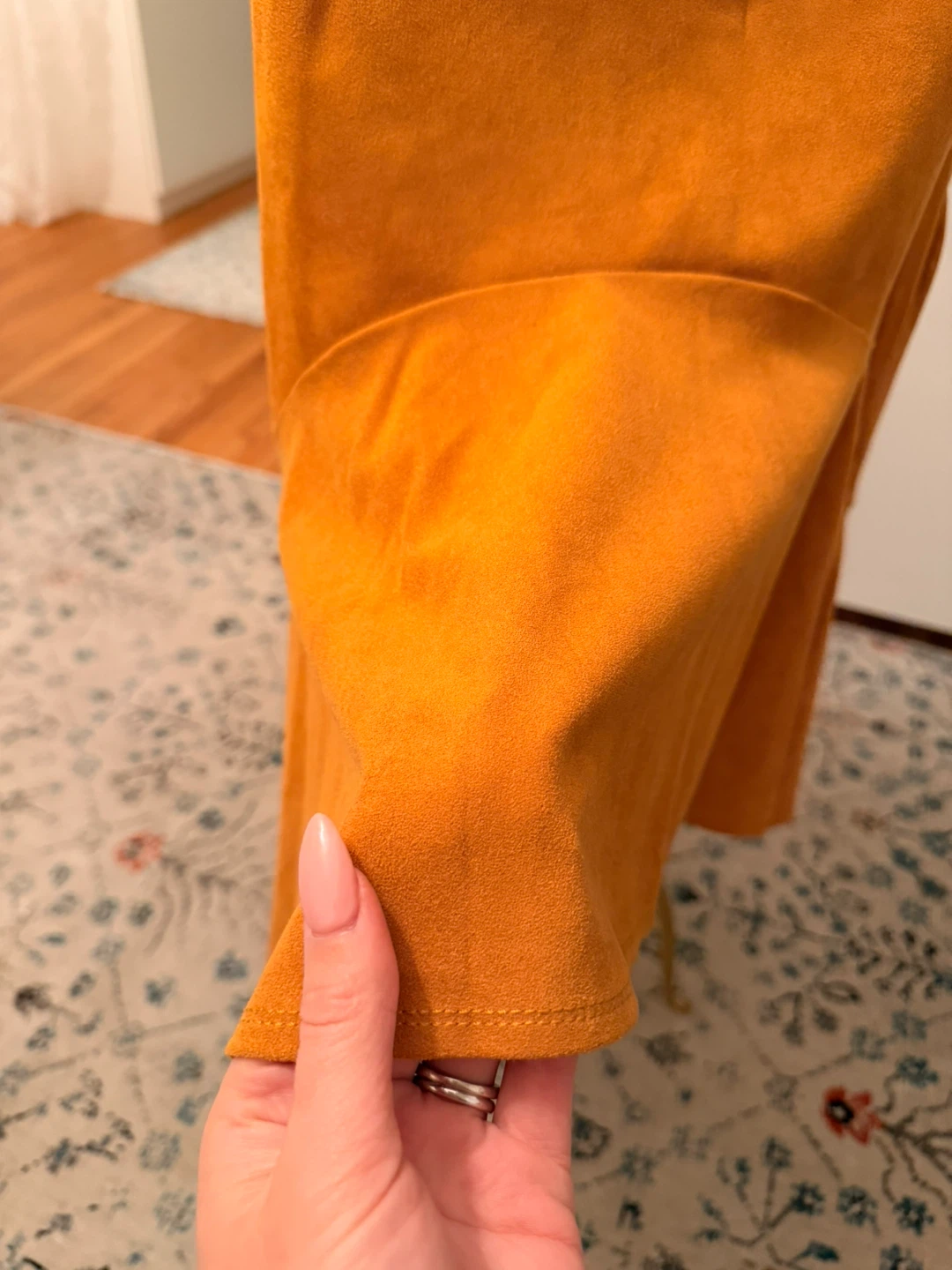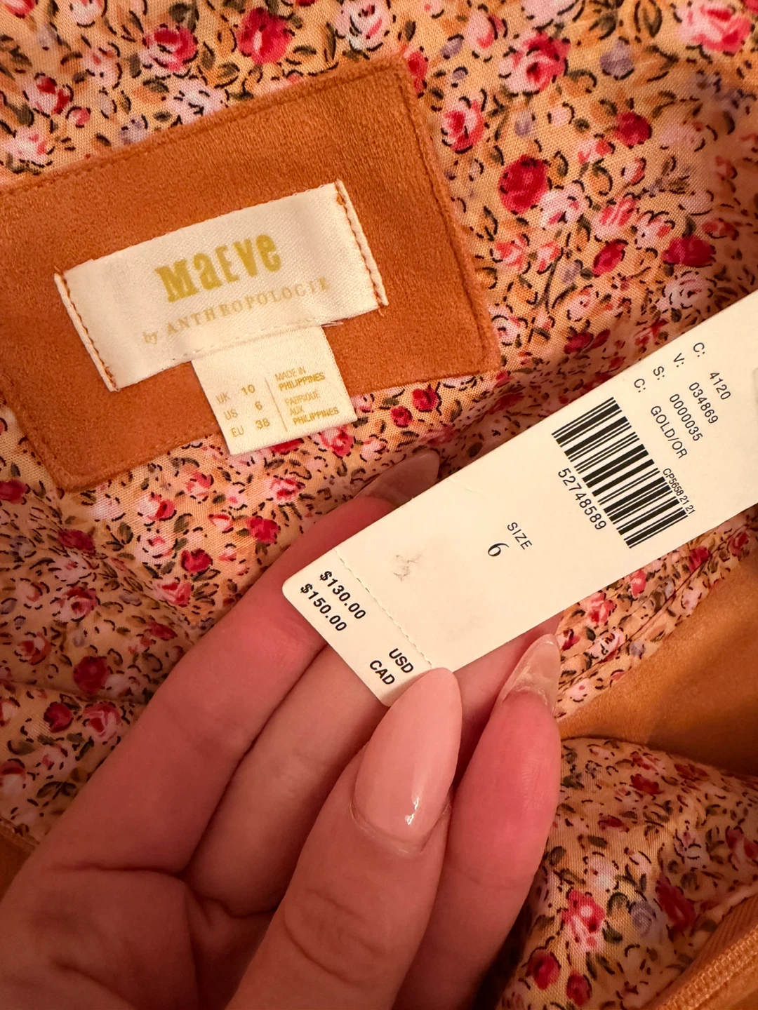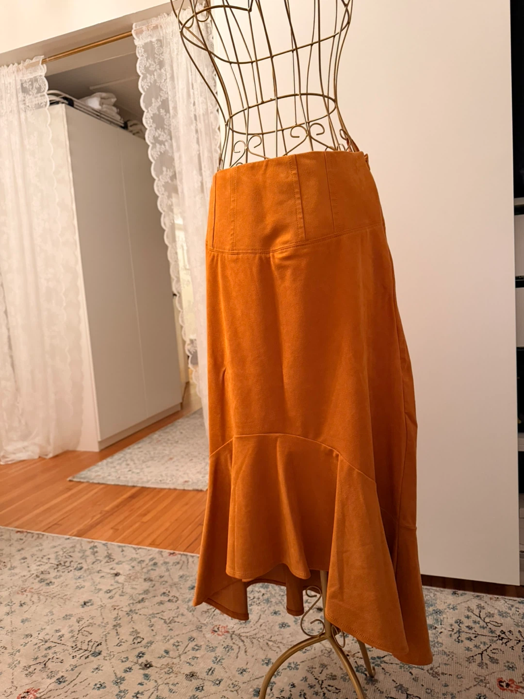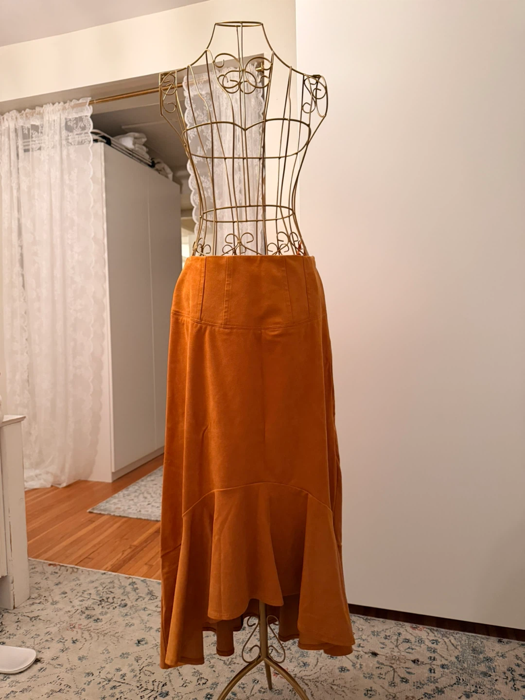 This is a beautiful gold skirt from Maeve by Anthropologie. It's a size 6. Suede fabric. originally $150 CAD and I never wore it.