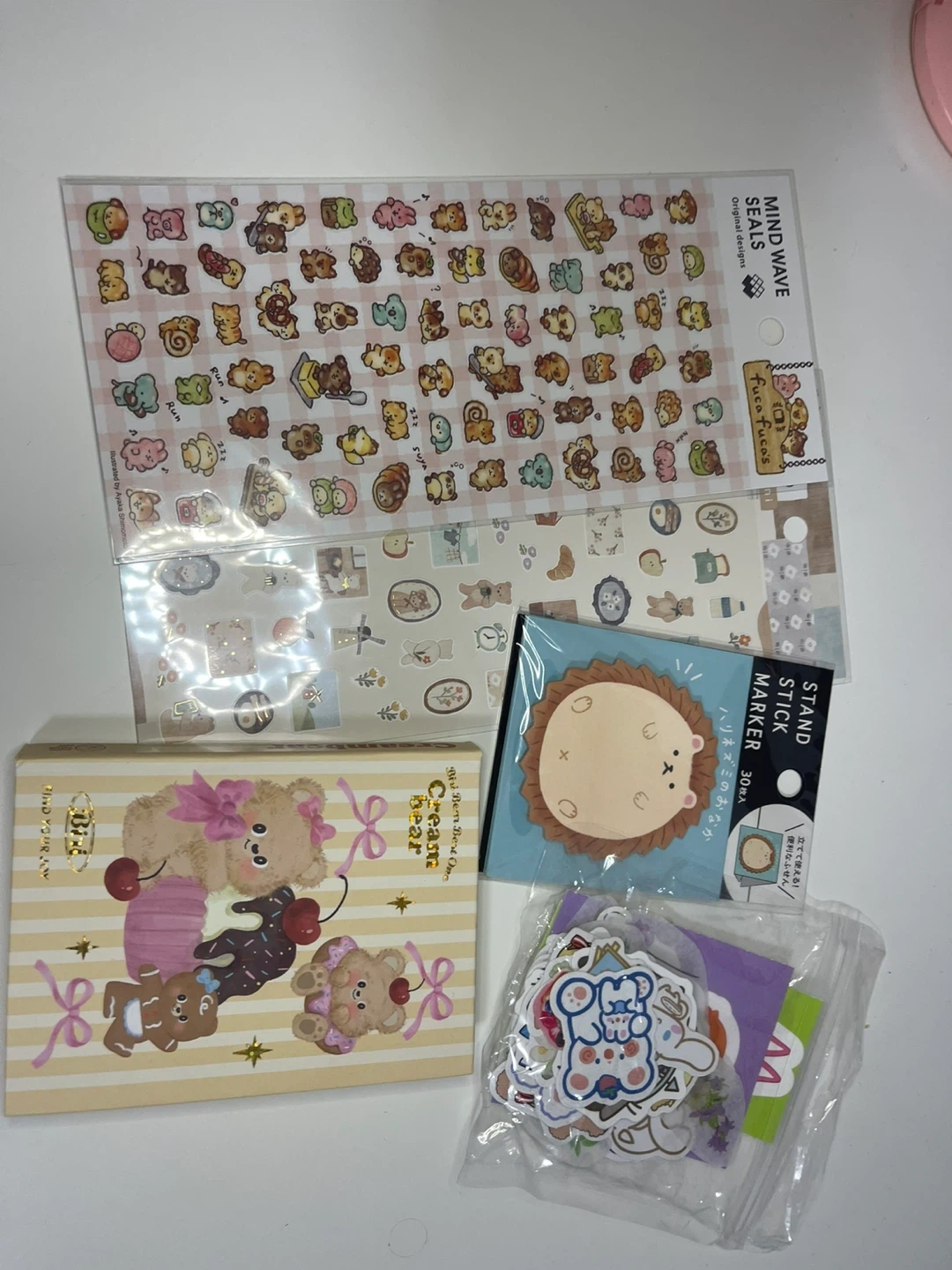 Comes with many freebies, and a pouch for the camera. Freebies include stickers, mini notebook, and camera charm.