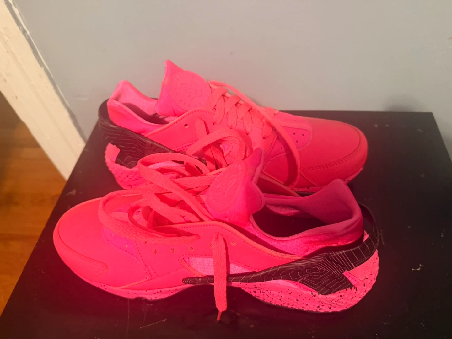 Selling a pair of Nike Huarache shoes in a vibrant hot pink color! These shoes are in good condition and ready for a new owner. Comfortable and stylish, they're perfect for adding a pop of color to your outfit (No Box).