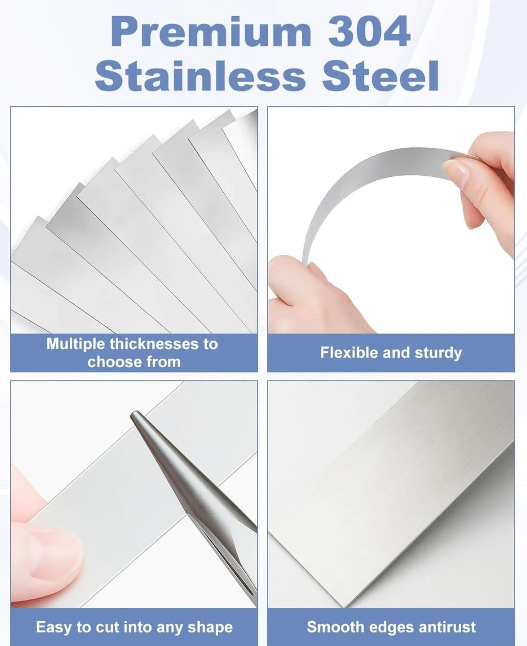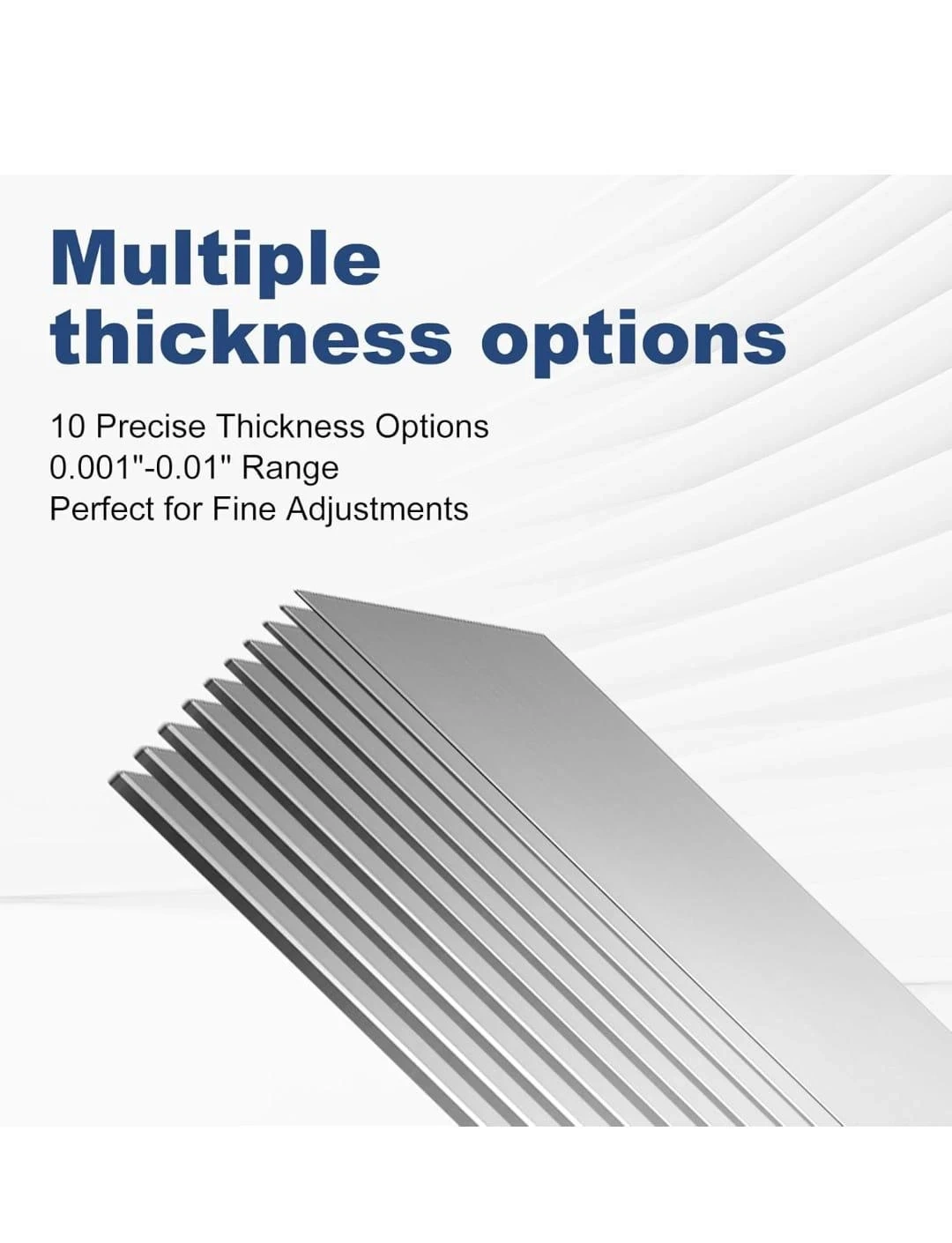 Selling AOKLIT 304 stainless steel shim stock. These are rust and corrosion resistant, durable and long-lasting. They can be cut to size and are smooth and burr-free. There are multiple thickness options available, ranging from 0.001" to 0.01". Perfect for fine adjustments