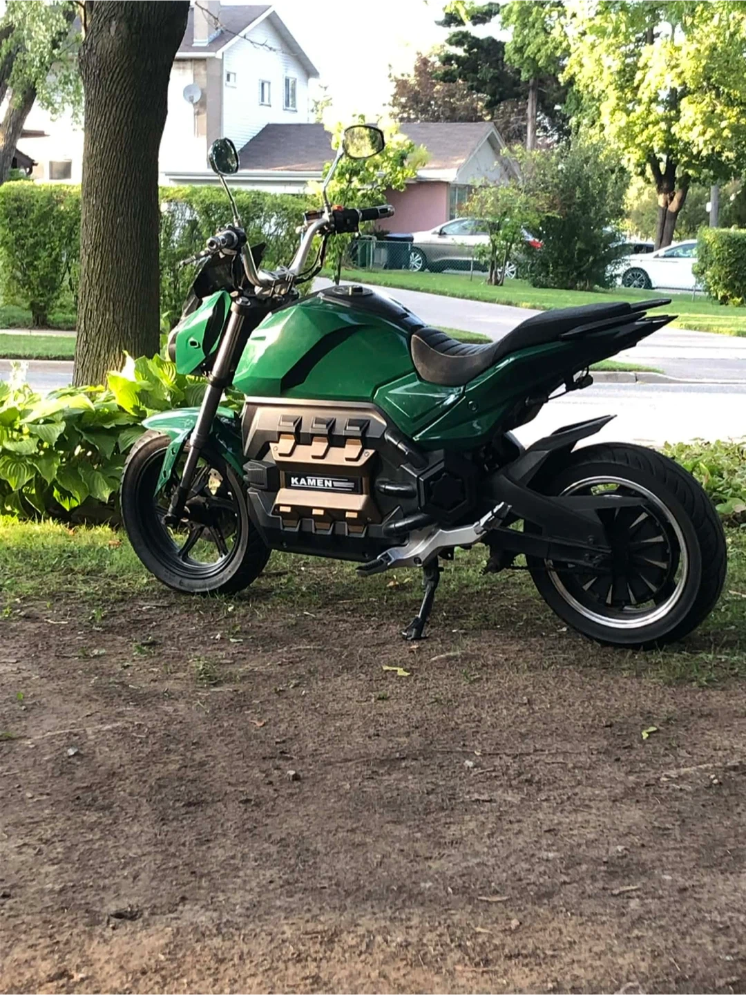 Selling a green Kamen electric motorcycle. It's in good condition and ready for a new rider! The bike has a unique design and is perfect for city commuting or weekend rides. Feel free to contact me with any questions!