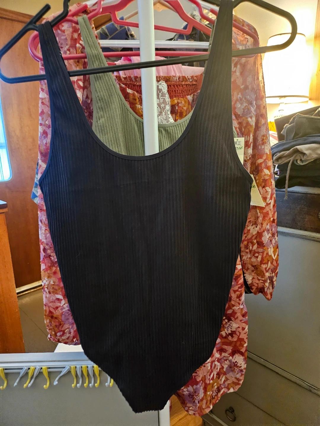 Selling a brand new Aerie black ribbed bodysuit in size medium! It's in perfect condition and ready for a new home. The tag shows the original price was $49.95 CAD+ tax