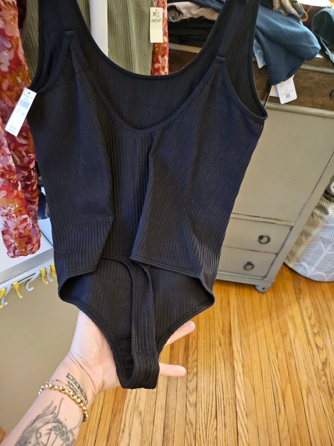 Aerie Black Ribbed Thong Bodysuit - Size M
