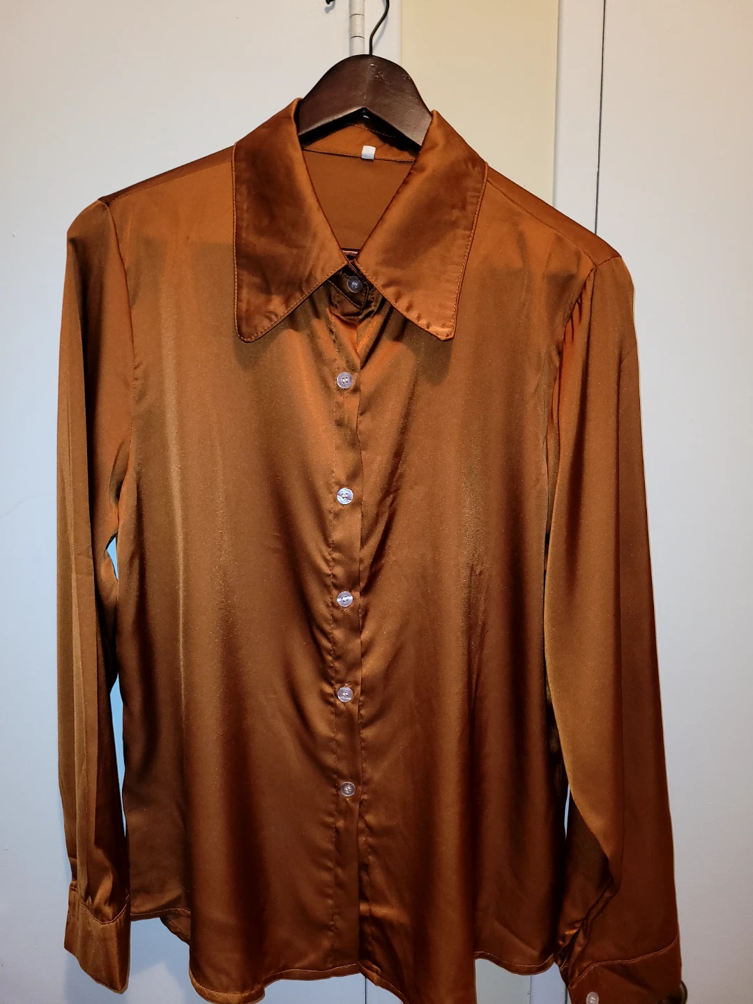 Brown Satin Button-Up Shirt - Size L🥕