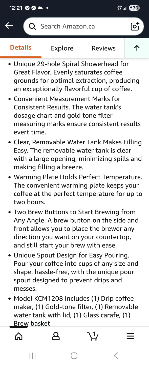 Brew the perfect cup every morning with this KitchenAid 12-cup coffee maker! This model features a unique 29-hole spiral showerhead for optimal flavor extraction and even saturation of coffee grounds, ensuring an exceptionally flavorful cup of coffee. I'm selling it in brand new condition, complete with all original packaging and documents.