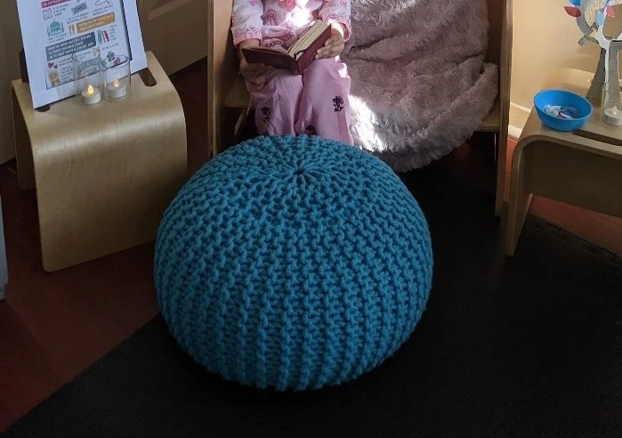Blue Knit Pouf Ottoman