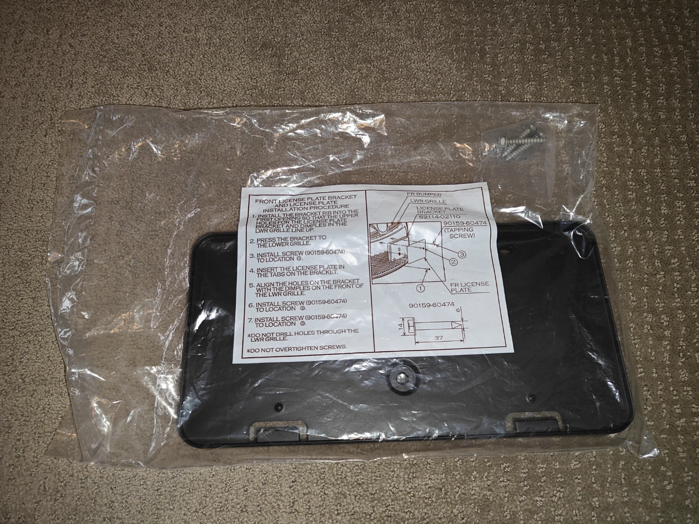 I am selling an OEM Toyota Corolla Front License Plate Bracket with Installation Procedures in new condition. Also includes the 3 License Bracket Screws. Front Bumper E. This is a complete kit, perfect for vehicles moving to states that require a front plate or for replacing a damaged mount.