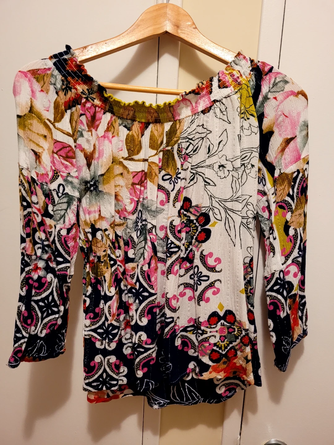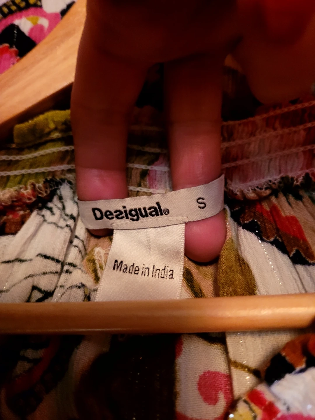 This is a lovely Desigual blouse in size small! It features a vibrant floral pattern and is made in India. Perfect for adding a pop of colour to your wardrobe!