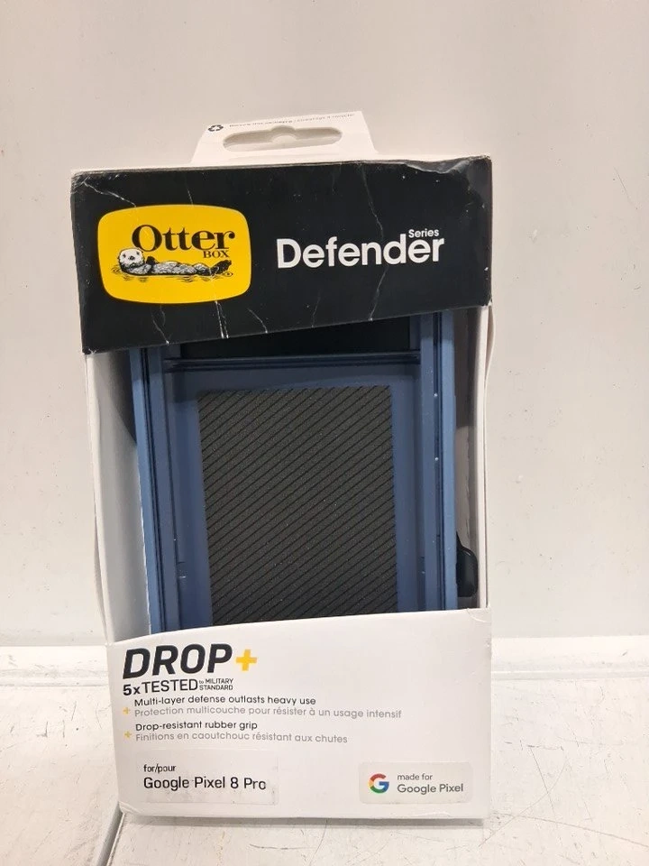 I'm selling a new blue Otterbox Defender Series case for the Google Pixel 8 Pro. It's rugged, durable, and comes with a holster clip kickstand. This case has multi-layer defense from the solid inner shell and resilient outer slipcover with port covers that block dirt, dust, and lint from getting into jacks and ports.